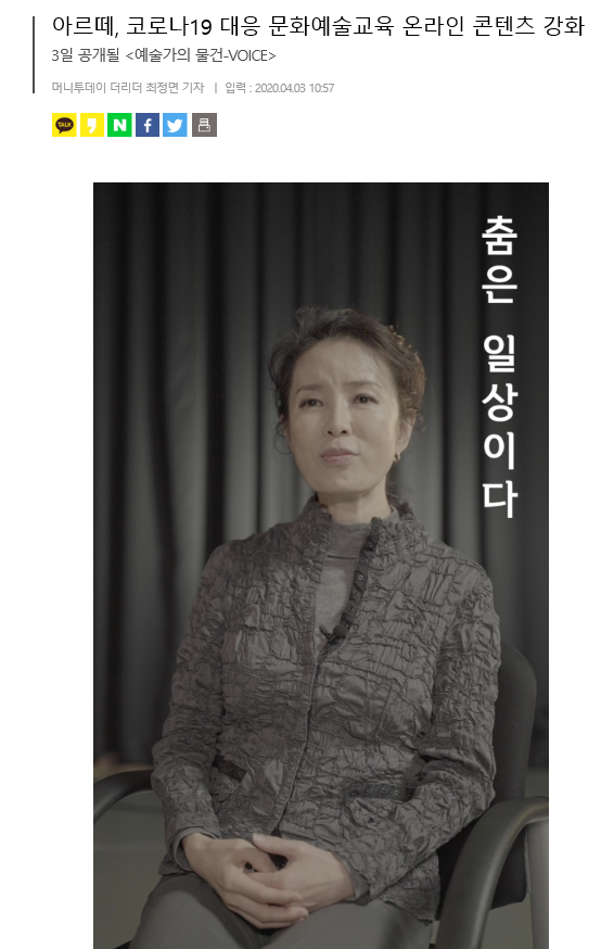 아르떼, 코로나 19 대응 문화예술교육 온라인 콘텐츠 강화 <예술가의 물건-VOICE>