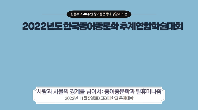 2022년도 한국중어중문학회 추계연합학술대회 개최 안내(11/5)