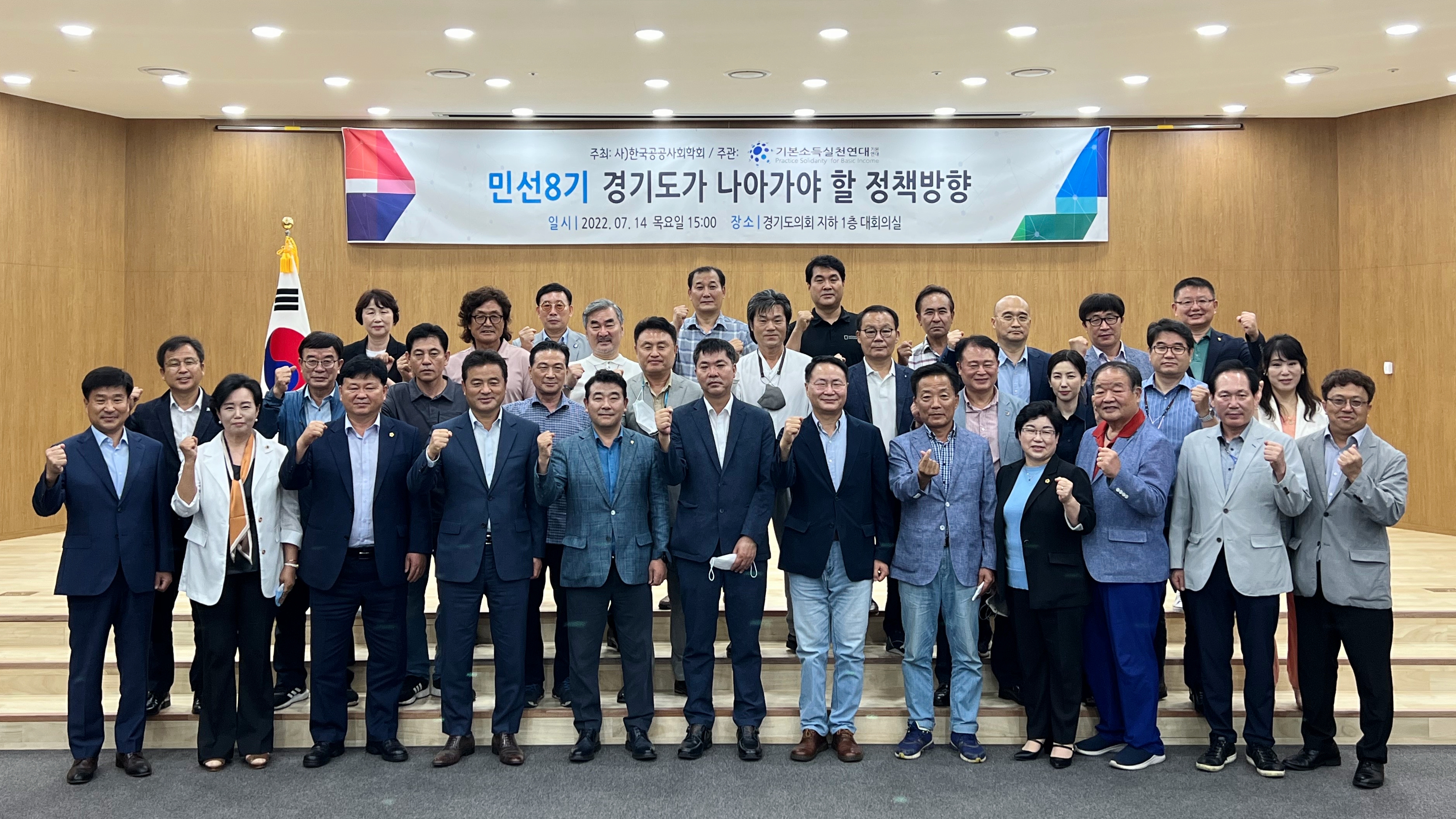 사) 한국공공사회학회와 기본연대(기본소득실천연대)는 “민선8기 경기도가 나아가야 할 정책방향” 주제로 2022년 7월 14일(오후 3시-5시) 경기도의회에서 토론회를 개최했다.