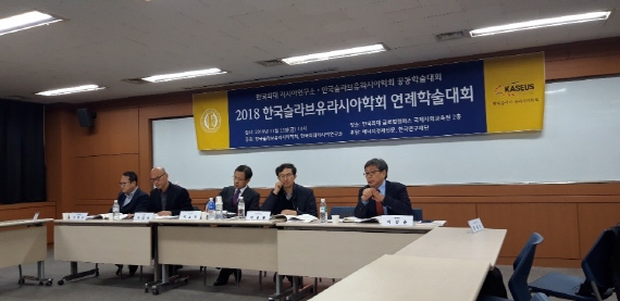 2018년 11월 23일(금) 러시아연구소는 본교 글로벌캠퍼스 국제사회교육원 연구동에서 한국슬라브·유라시아학회와 공동으로 국내학술대회를 개최했다. 이번 학술대회는 크게 인문학 분과와 사회과학 분과로 나뉘어 진행됐다. 한국슬라브·유라시아학회 차기 회장인 김진영 교수가 '20세기 한국 사회와 러시아 문학사 기술의 역사'라는 주제로 인문학 분과의 회의를 시작했다. 인문학 분과의 2세션에서는 러시아연구소의 최우익 HK교수가 '러시아 북극 주민의 사회경제적 변화와 인식: 사하공화국 주민의 설문 조사 결과를 중심으로'라는 주제로 발표했으며, 이외 황성우, 김선래, 김혜진 교수가 다양한 발표의 사회와 토론으로 참여했다.
