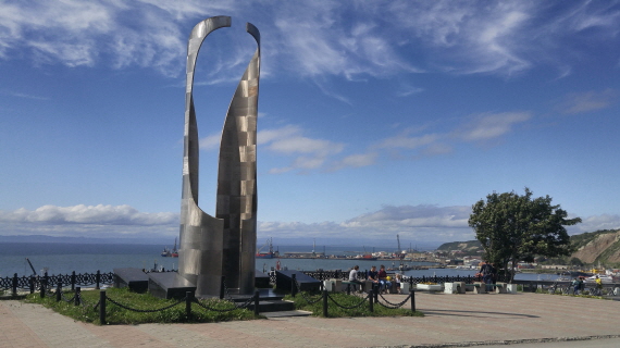 사진 3. 코르사코프 망향의 탑과 항구 전경