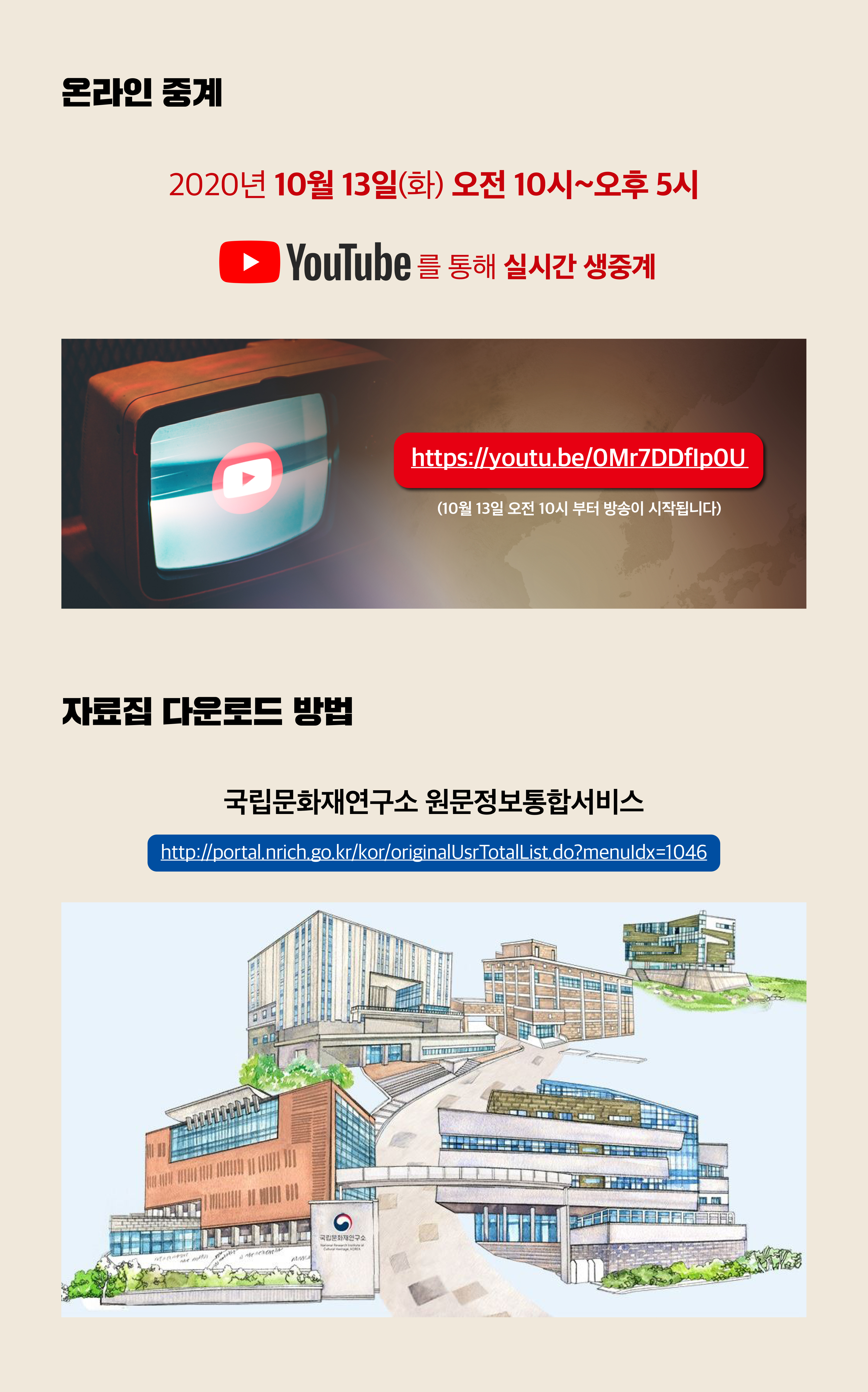 코로나19로 인하여 유튜브 채널로 생방송 할 예정입니다. 당일 아래 링크로 들어오시면 참석 가능하니 많은 관심 부탁드립니다.
