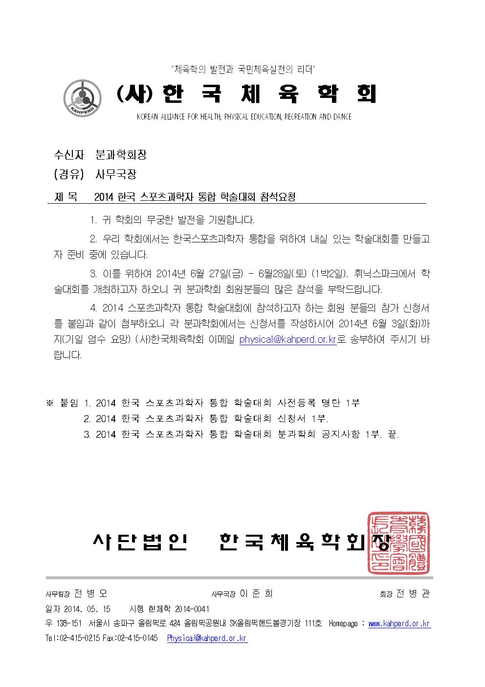 2014 한국스포츠과학자 통합 학술대회와 관련하여 아래와 같이 안내하오니 많은 참석바랍니다.