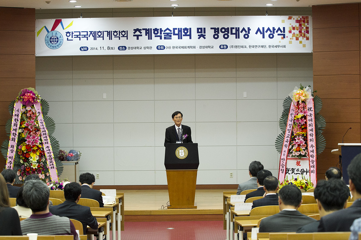 안녕하십니까? 지난 11월 8일(토) 경성대학교에서 열린 2014년 한국국제회계학회 추계학술대회 및 경영대상 시상식이 성황리에 개최되었습니다. 이번 학회는 170명이 넘는 회원님들이 참석하셔서 45의 논문을 발표해 주셨습니다. 바쁘신 와중에도 먼 길을 마다하지 않으시고 참석해 주신 회원분들과 멀리서 관심 가져주신 모든 분들께 감사드립니다. 앞으로도 학회발전을 위해 많은 관심 부탁드립니다