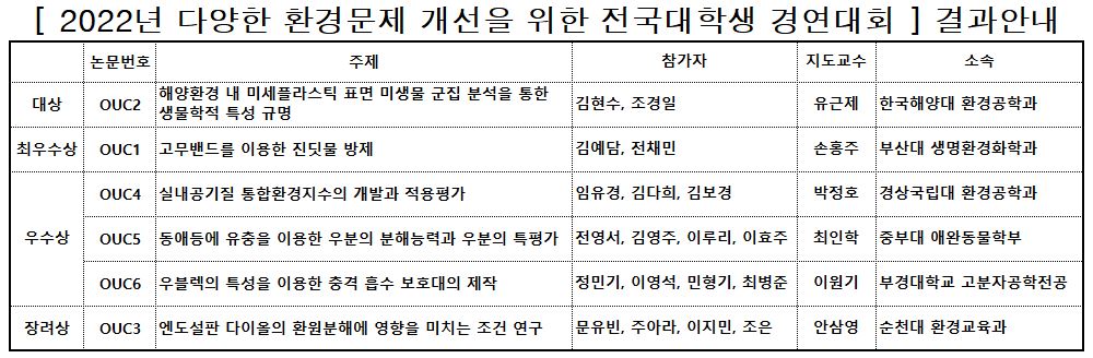 [대회결과안내]2022년 다양한 환경문제 개선을 위한 전국 대학생 경연대회
