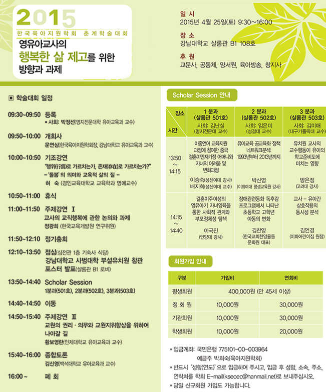 2015년 한국육아지원학회 춘계학술대회 개최 안내