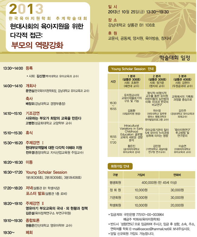 한국육아지원학회에서 2013년 추계학술대회를 『현대사회의 육아지원을 위한 다각적 접근: 부모의 역량강화』이란