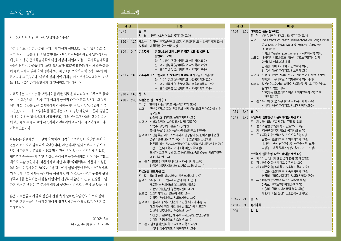 * 한국노년학회 2006 춘계학술대회 자세한 일정은 첨부파일을 확인하시기 바랍니다 *