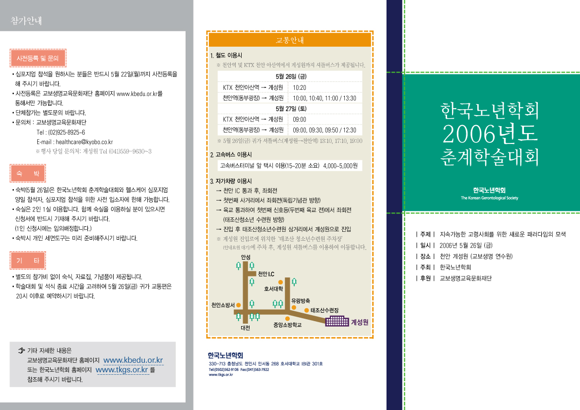 한국노년학회 2006년도 춘계학술대회 안내및 신청방법 (2006-04-16)