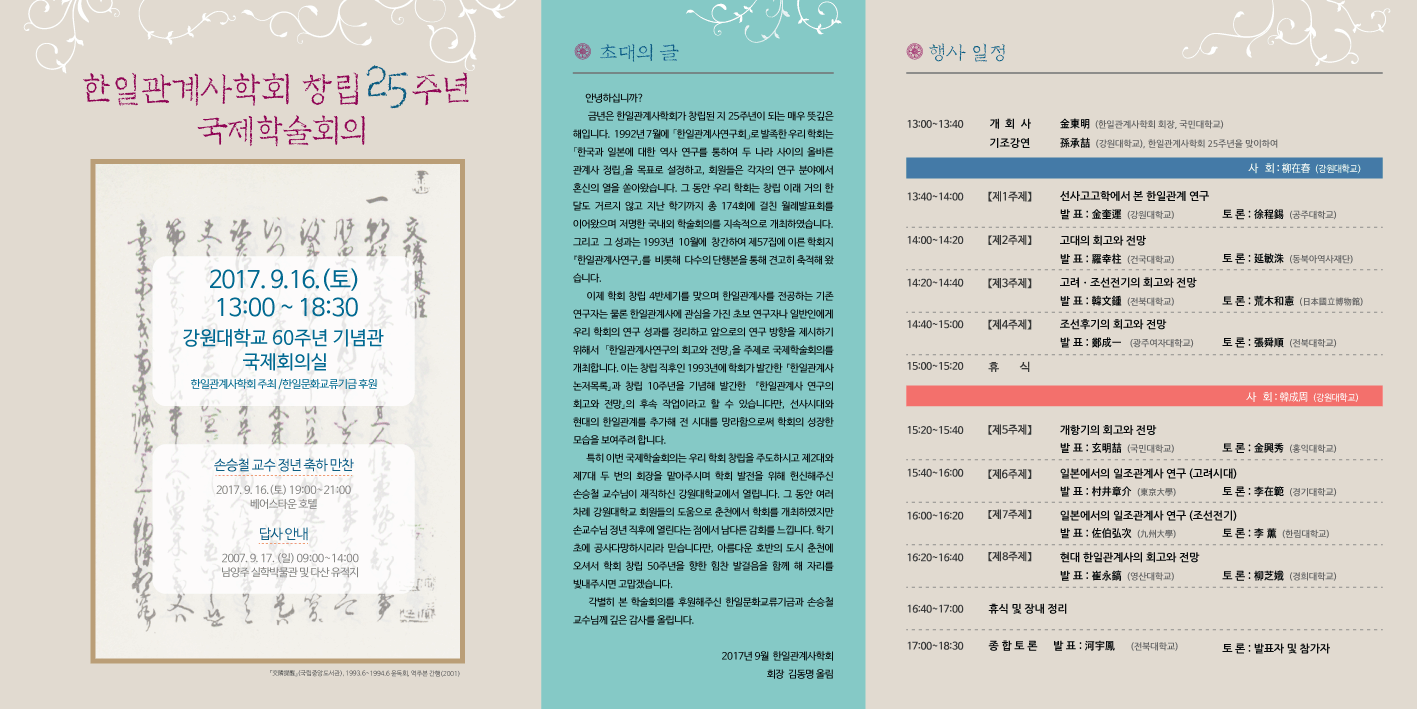 한일관계사학회 창립 25주년 국제학술회의, 9월 16-17일, 강원대
