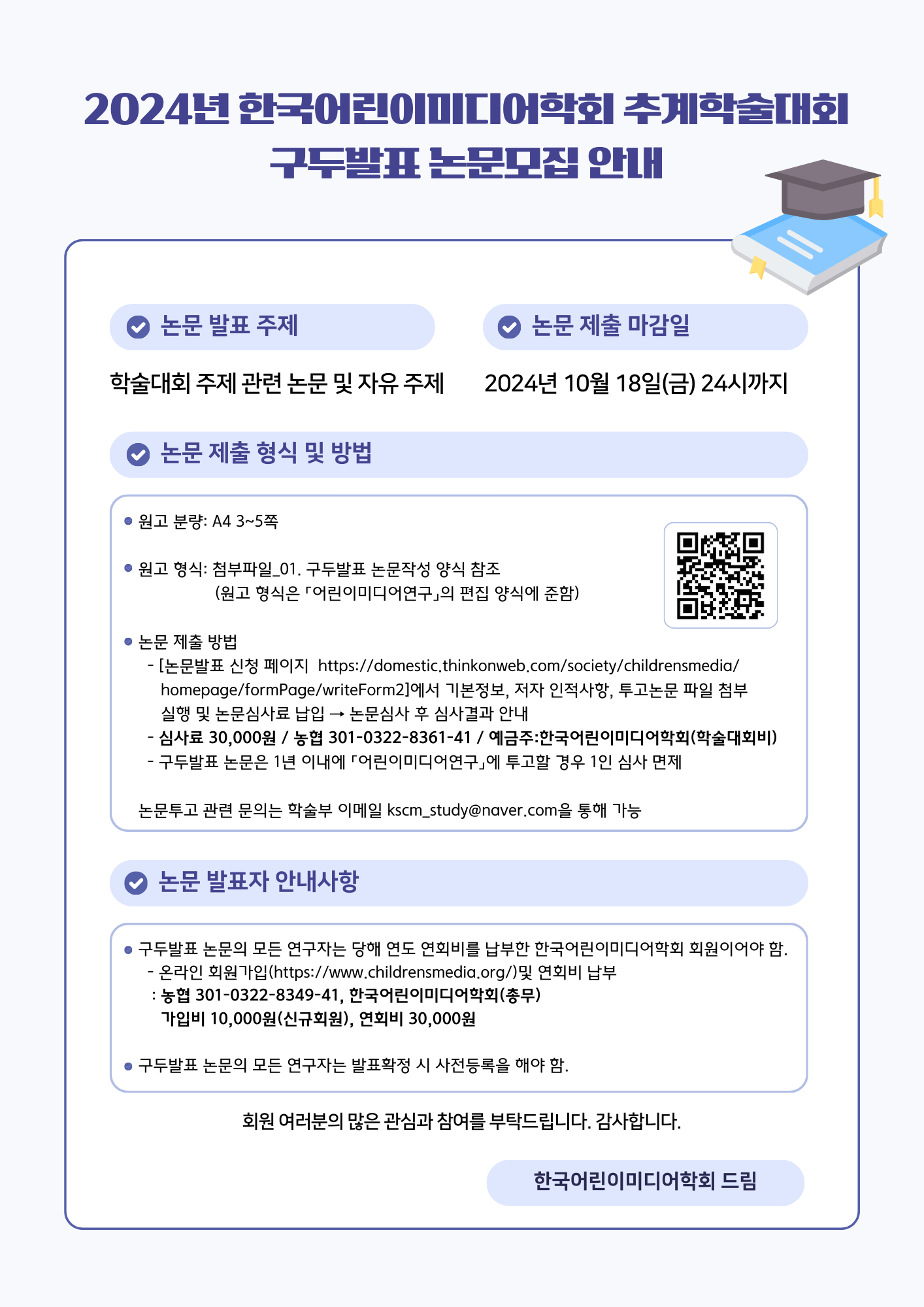 2024 한국어린이미디어학회 추계학술대회 사전등록 및 구두발표 논문모집 안내