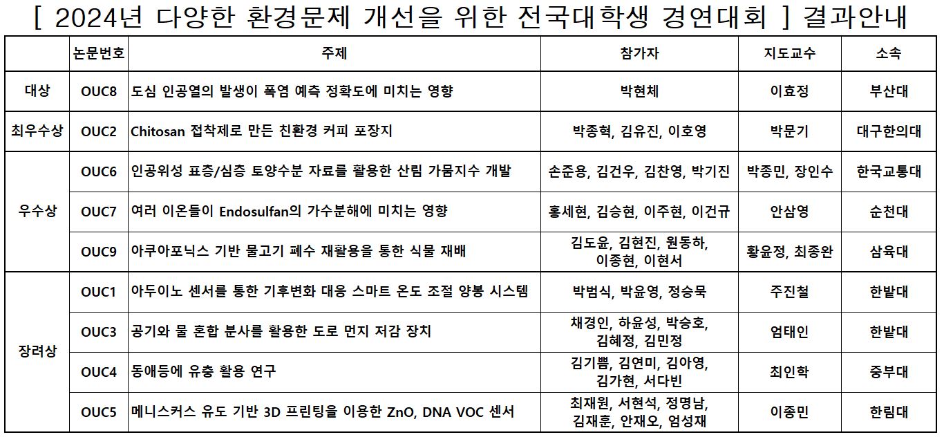 [대회결과안내]2024년 다양한 환경문제 개선을 위한 전국 대학생 경연대회