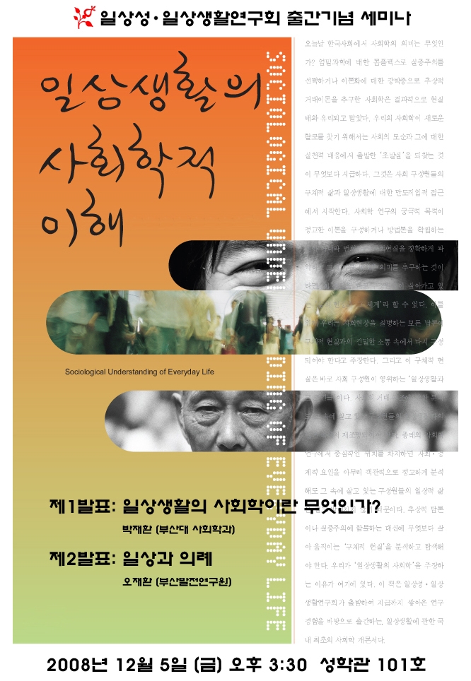 『일상생활의 사회학적 이해』출간기념 세미나를 아래와 같이 알려드립니다.