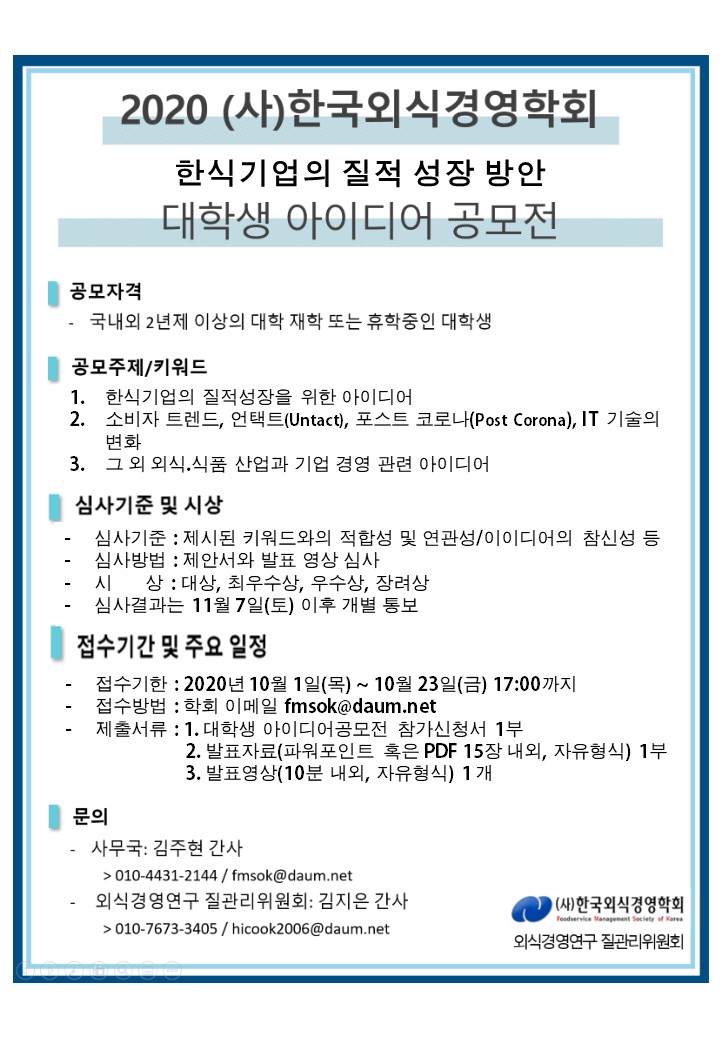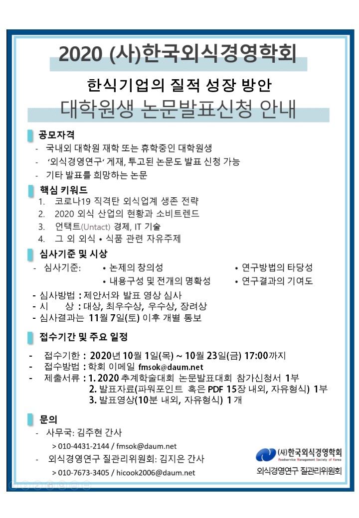 (사)한국외식경영학회 2020년도 추계 학술대회 안내