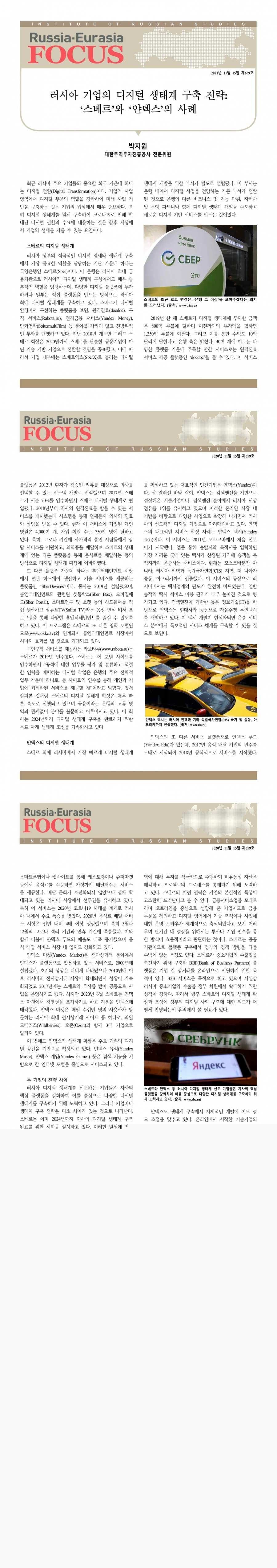 제659호 러시아 기업의 디지털 생태계 구축 전략: ‘스베르’와 ‘얀덱스’의 사례