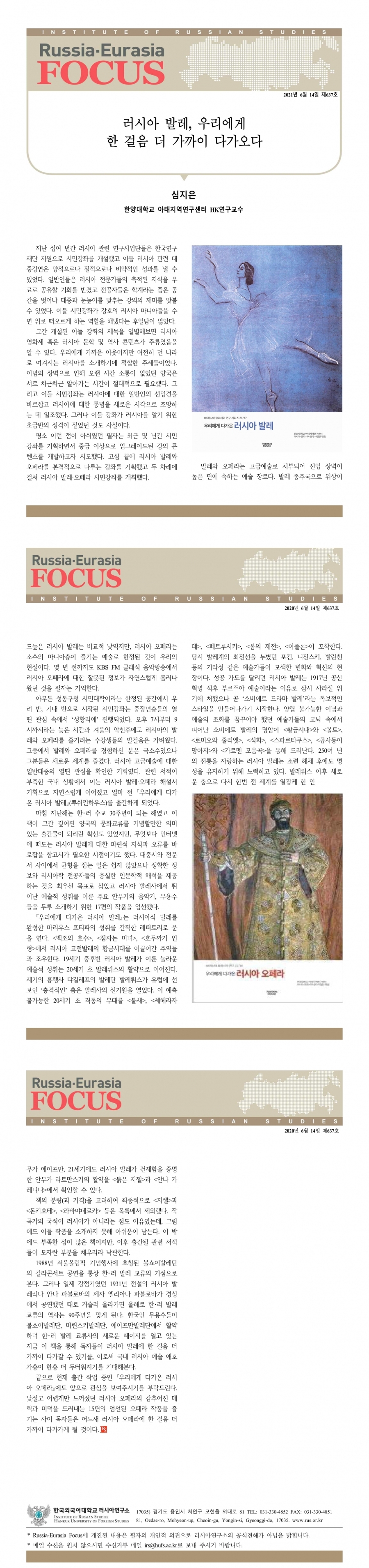 제637호 러시아 발레, 우리에게 한 걸음 더 가까이 다가오다