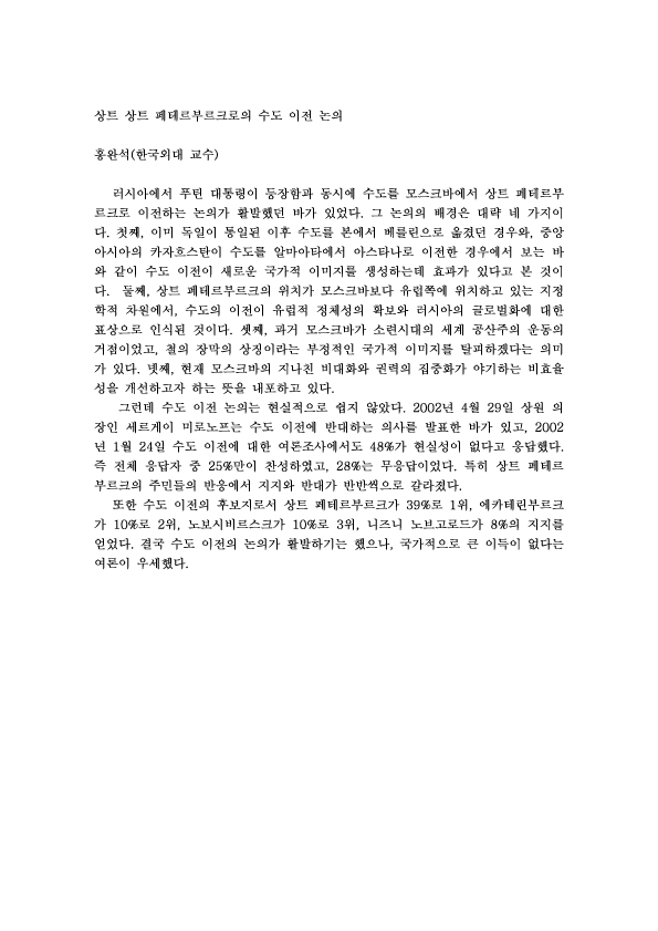 제35차 상트 페테르부르크로의 수도 이전 논의