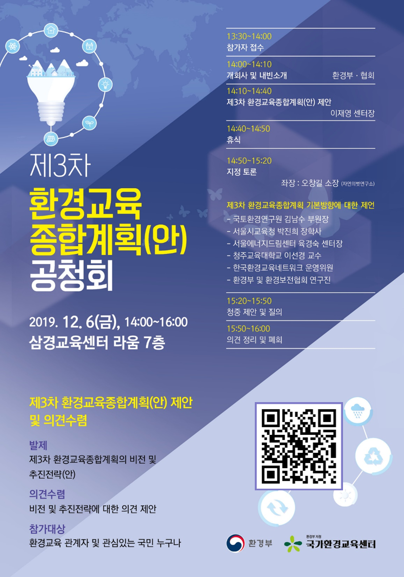 이와 관련하여, 12월 6일(금)에 삼경교육센터에서 환경교육 전문가 및 대국민 의견 수렴을 위한