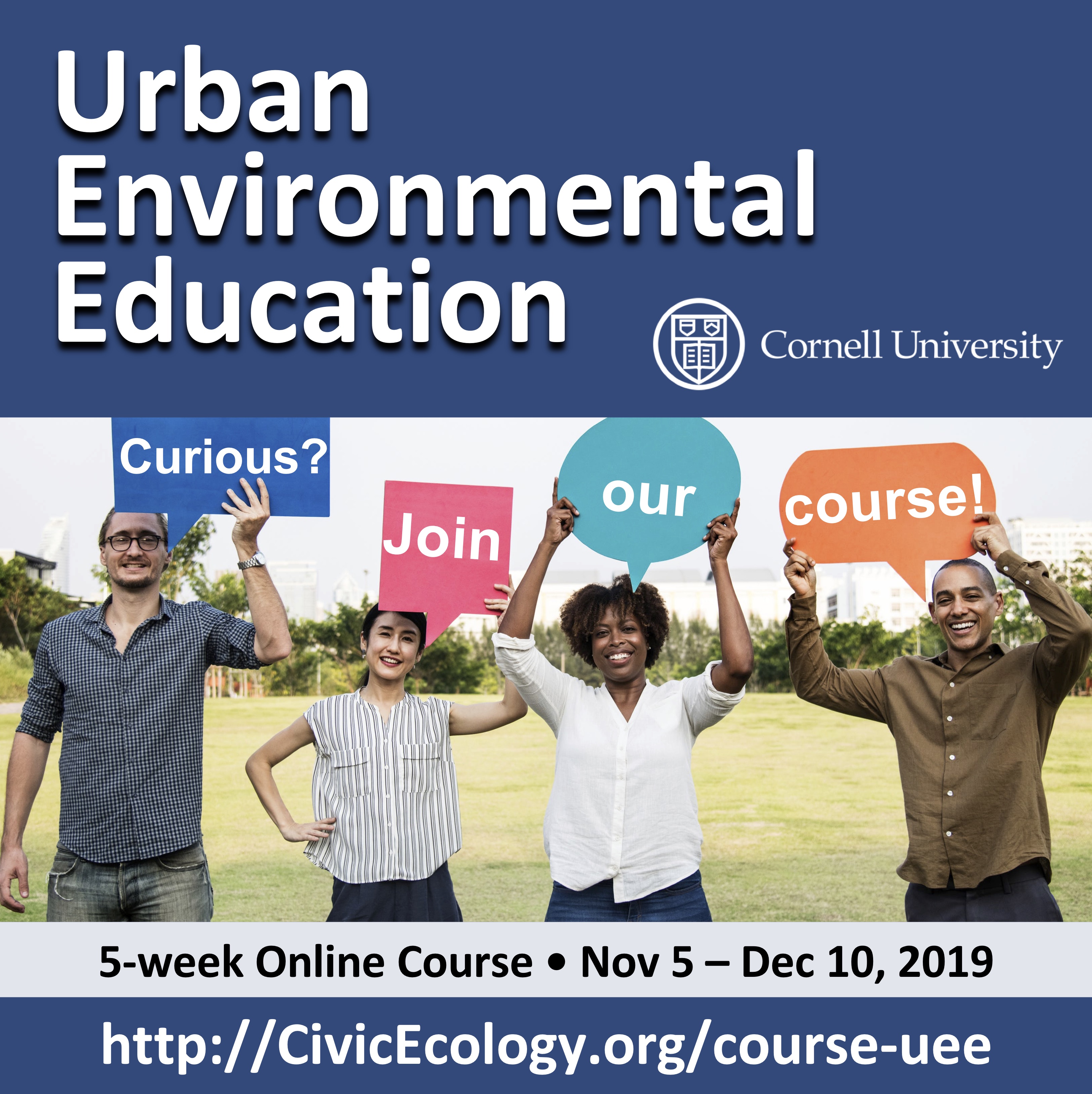 Everybody is welcome to join this course! Urban environmental education includes any learning practices that foster individual and community well-being and environmental quality in cities. You will learn about the urban context, theoretical background, educational settings, participants, and effective educational approaches of urban environmental education. This course provides outstanding course materials, webinars, and networking with peers from around the world. Learn with us!