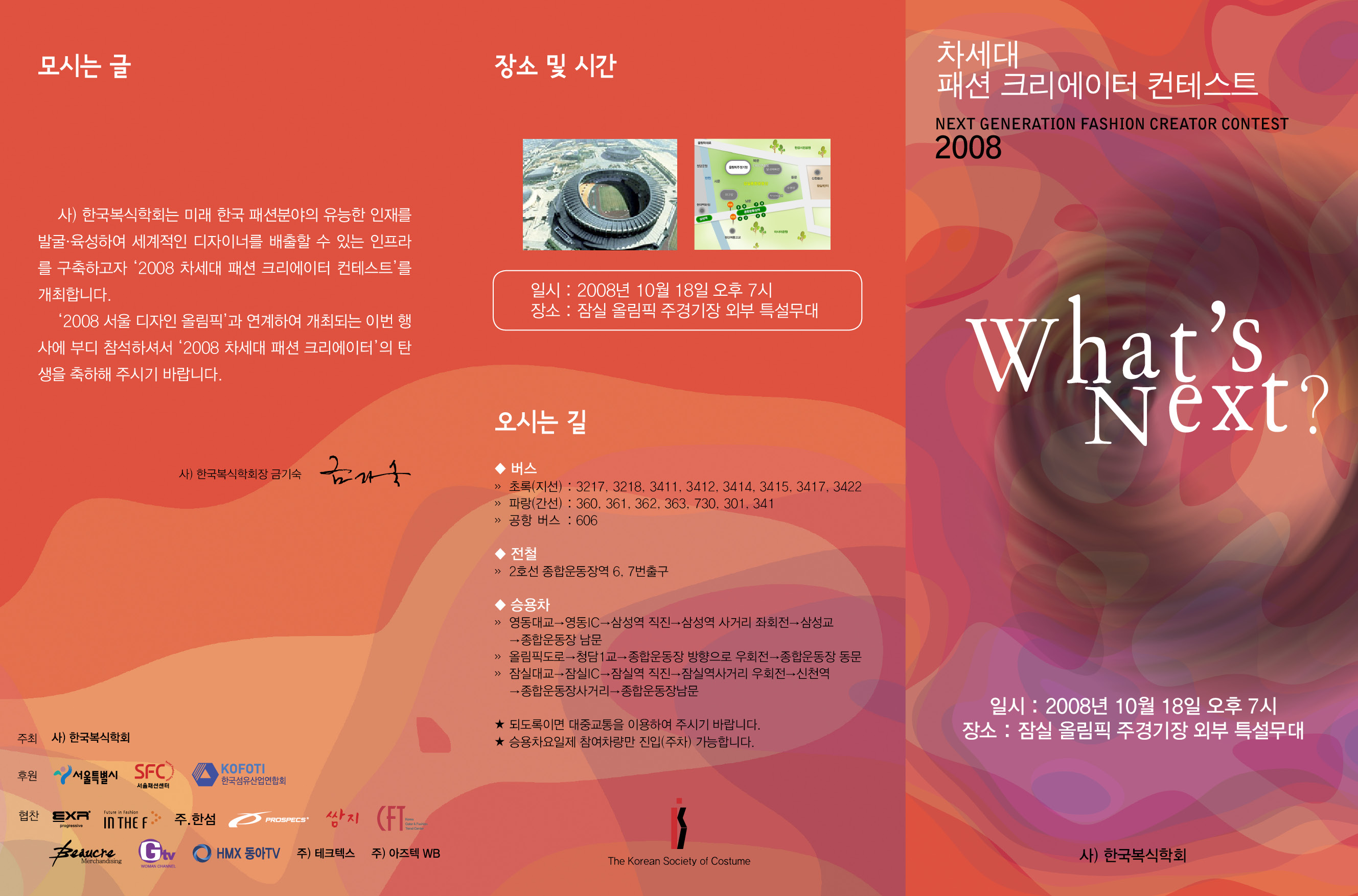 '2008 서울 디자인 올림픽'과 연계하여 개최되는 이번 행사에 부디 참석하셔서 '2008차세대 패션 크리에이터'의 탄생을 축하해 주시기 바랍니다.
