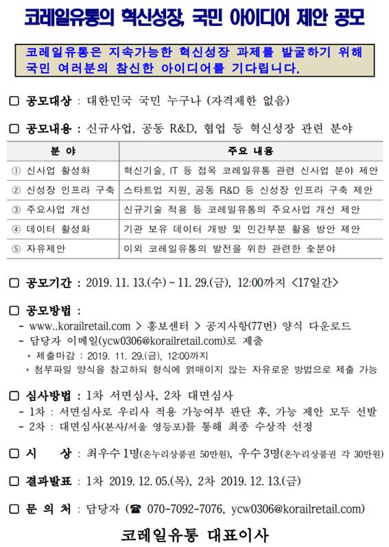 코레일유통의 혁신성장, 국민 아이디어 제안 공모