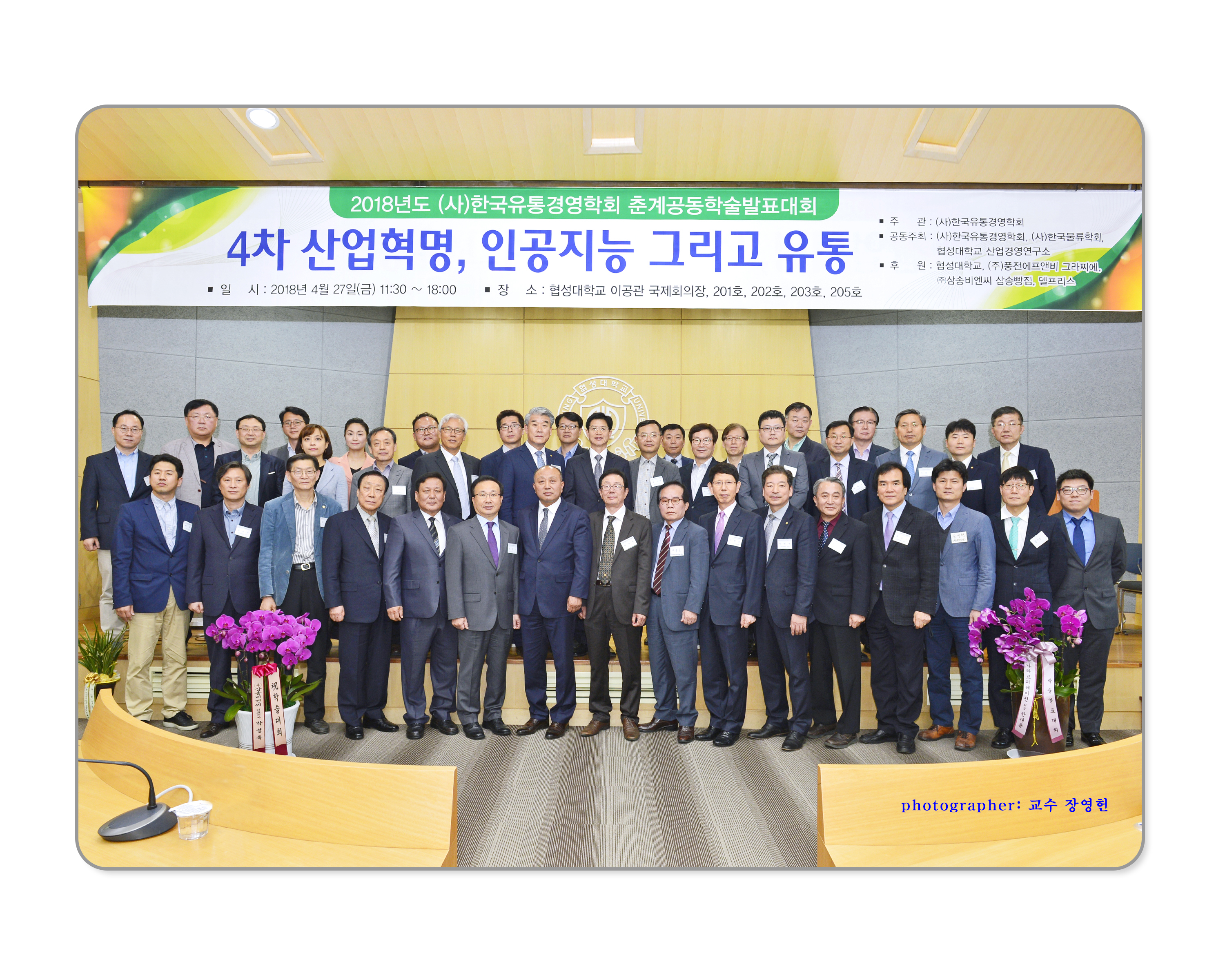 4월 27일(금) 협성대학교 이공관 3층 국제회의장에서 개최된 2018 춘계 공동학술발표대회는 '4차 산업혁명, 인공지능 그리고 유통'이라는 주제로 기조강연 1편, 학술발표대회 16편, 박사논문 공모전 수상작 6편의 옥고가 발표되었으며, 100여 명의 회원들께서 참석하여 자리를 빛내주셨습니다.