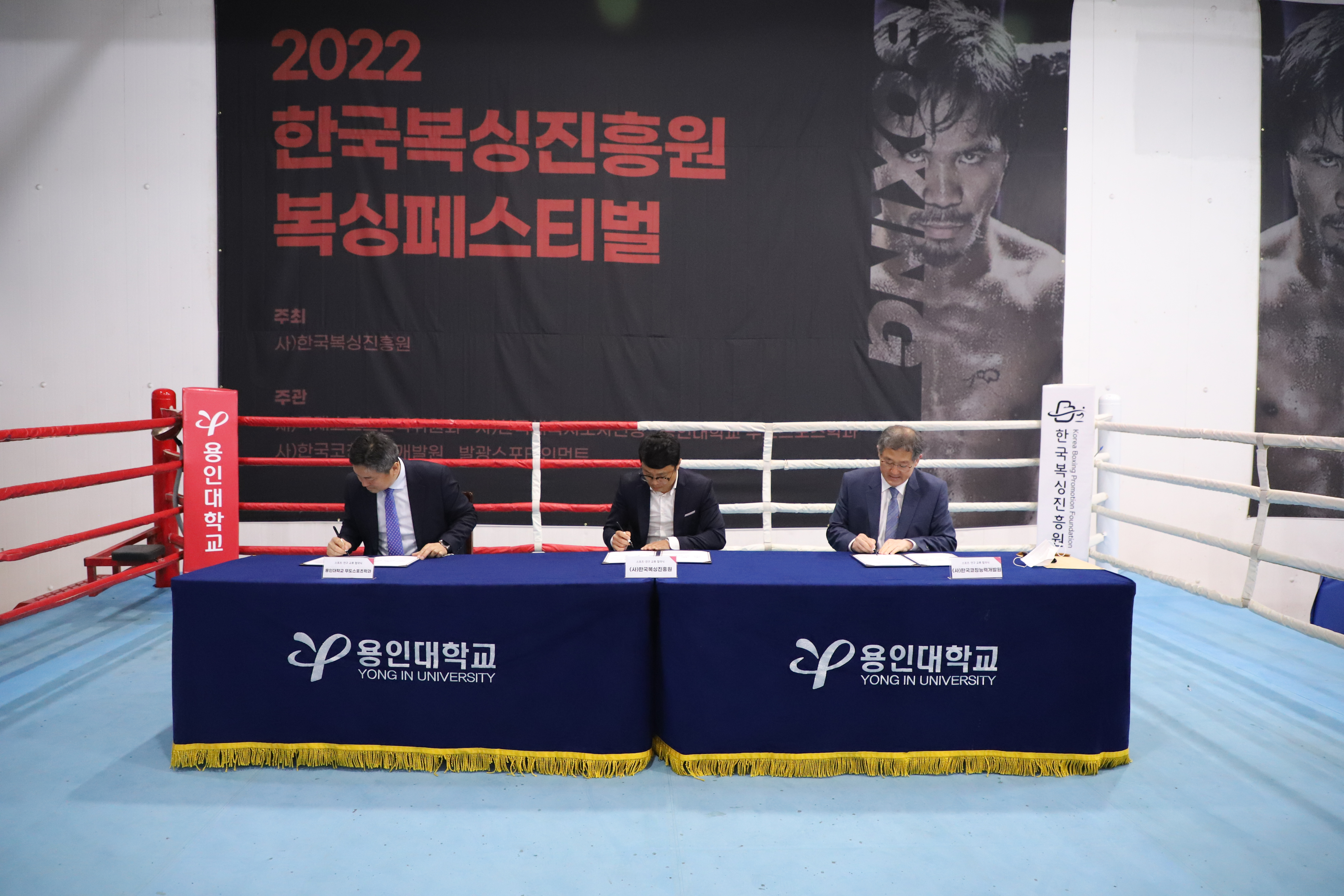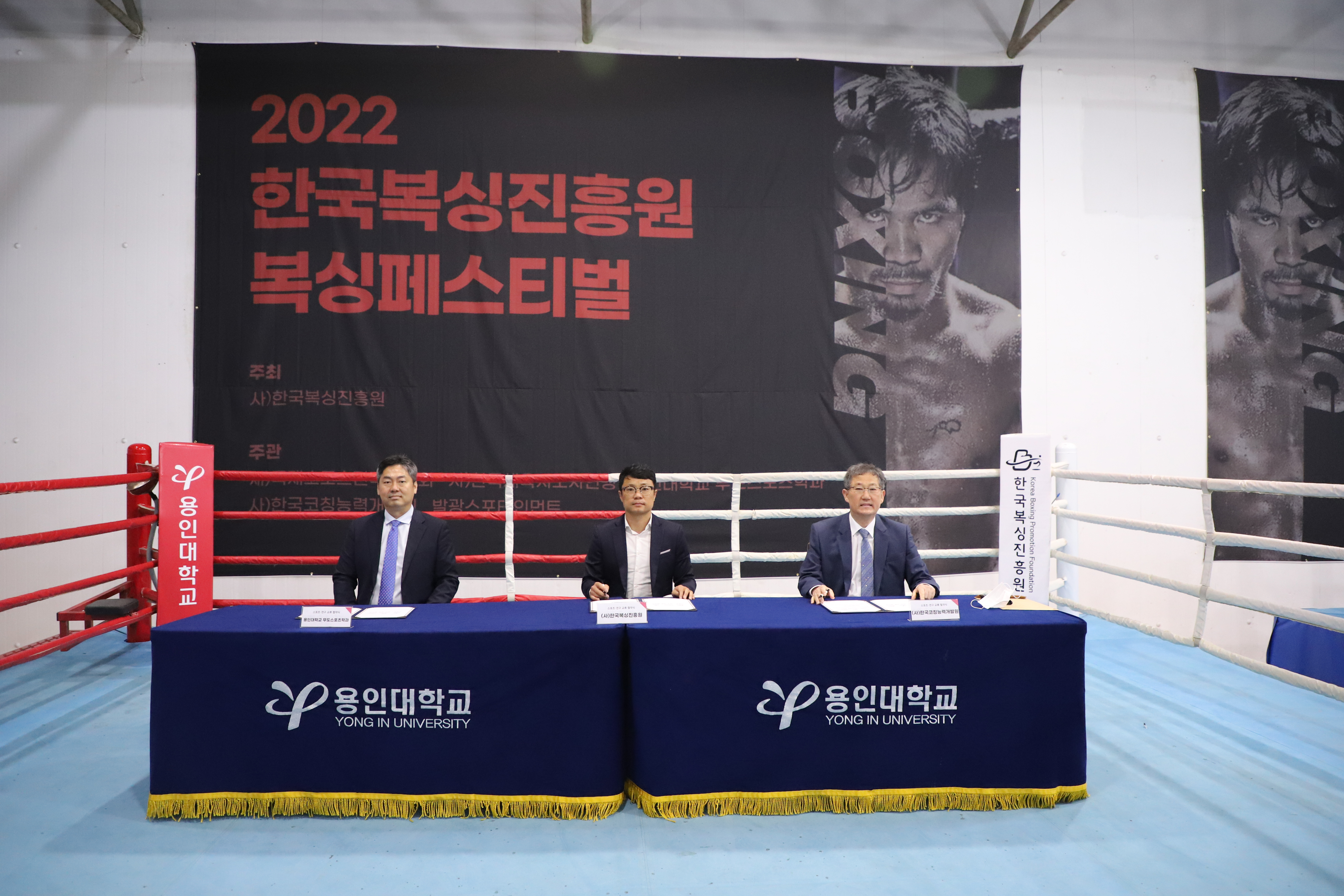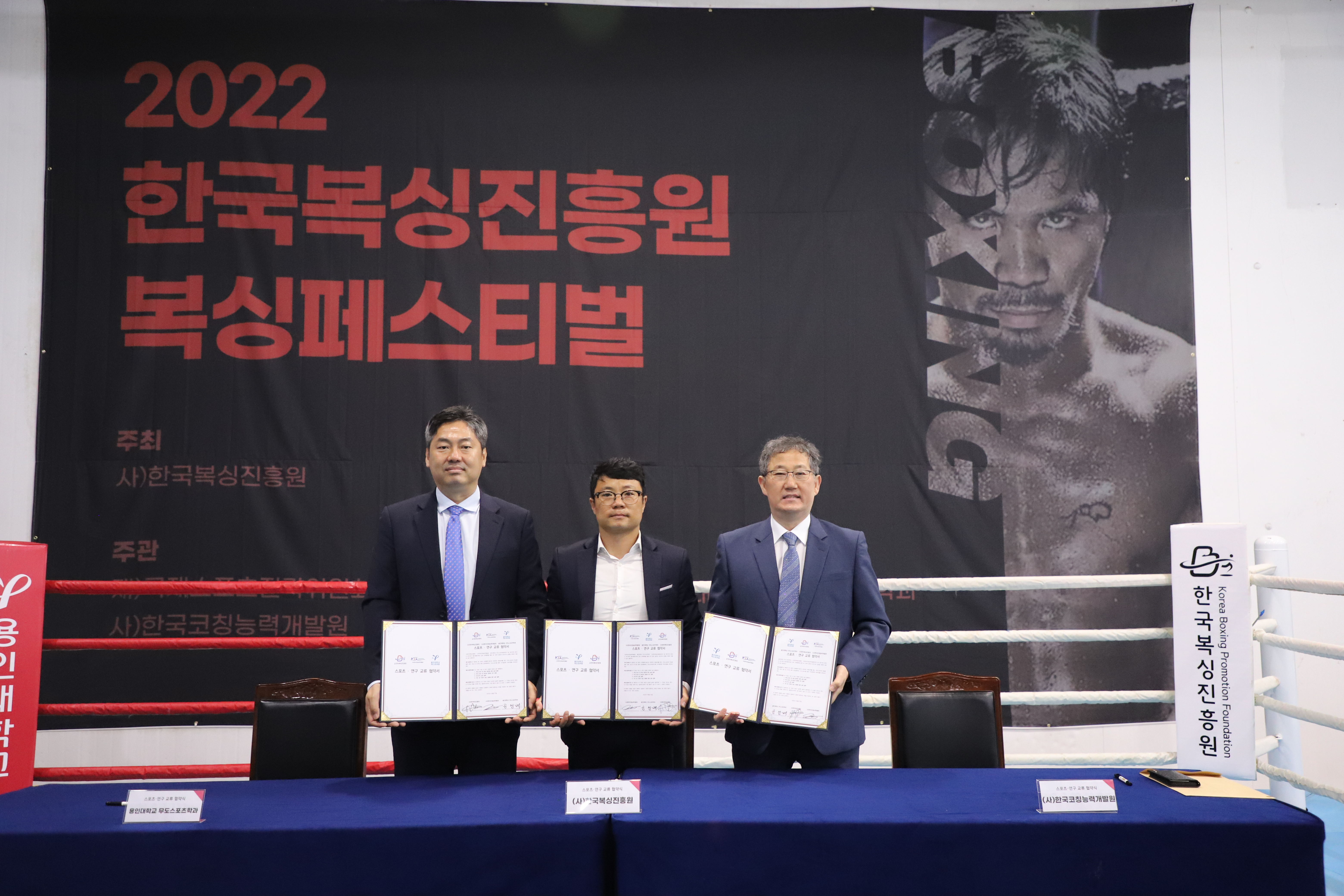 지난 토요일(57)에 용인대 종합체육관에서 복싱 발전을 위해 ()한국복싱진흥원(김주영 이사장, KCDC 복싱아카데미 회장), 용인대 무도스포츠학과(공성배 학과장, 경기코칭능력개발센터 회장), ()한국코칭능력개발원(박정근 원장) 3단체의 업무협약식을 가졌다. 특히 KCDC 복싱아카데미는 전국적으로 지회형태의 복싱아카데미를 확장할 예정이다.
