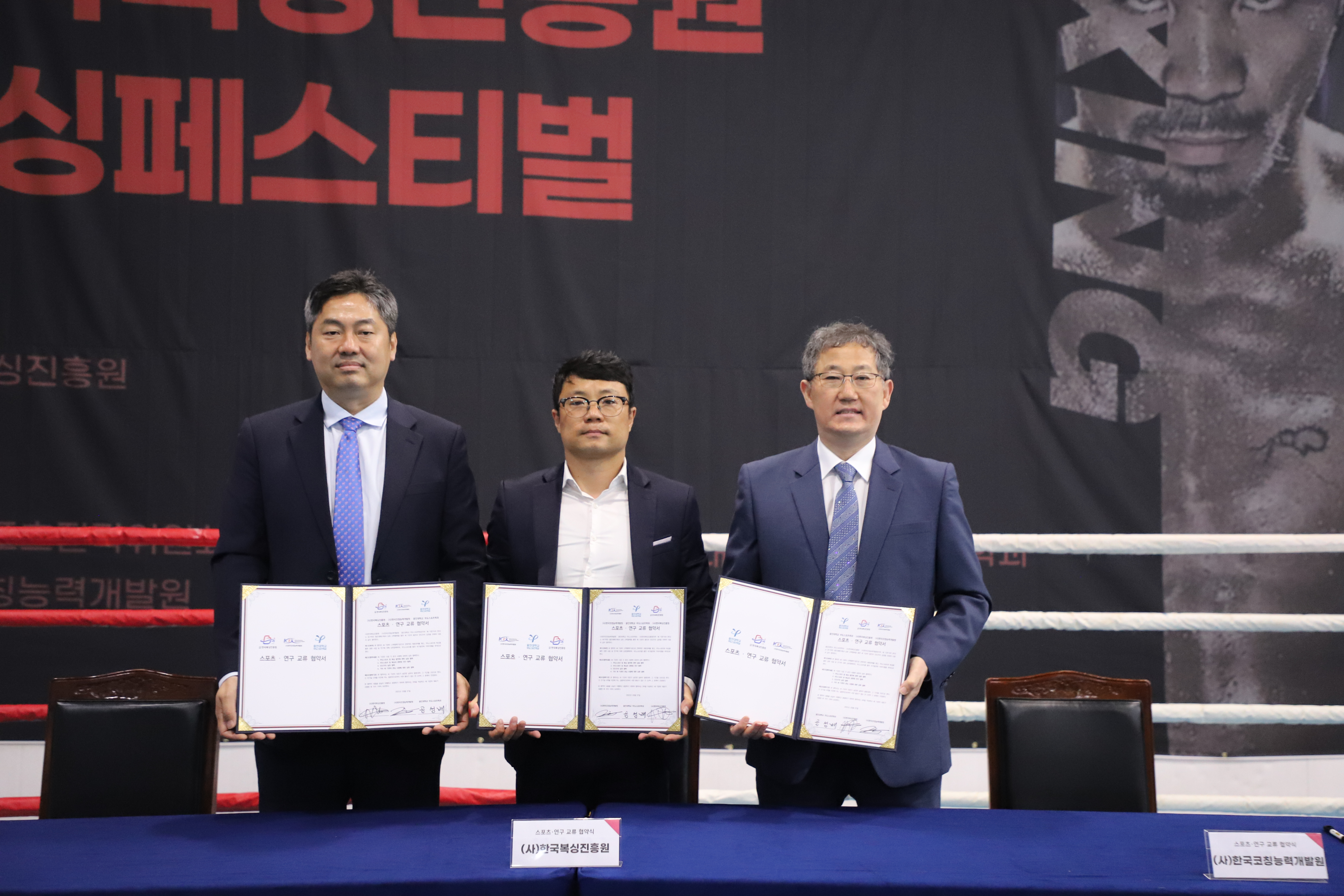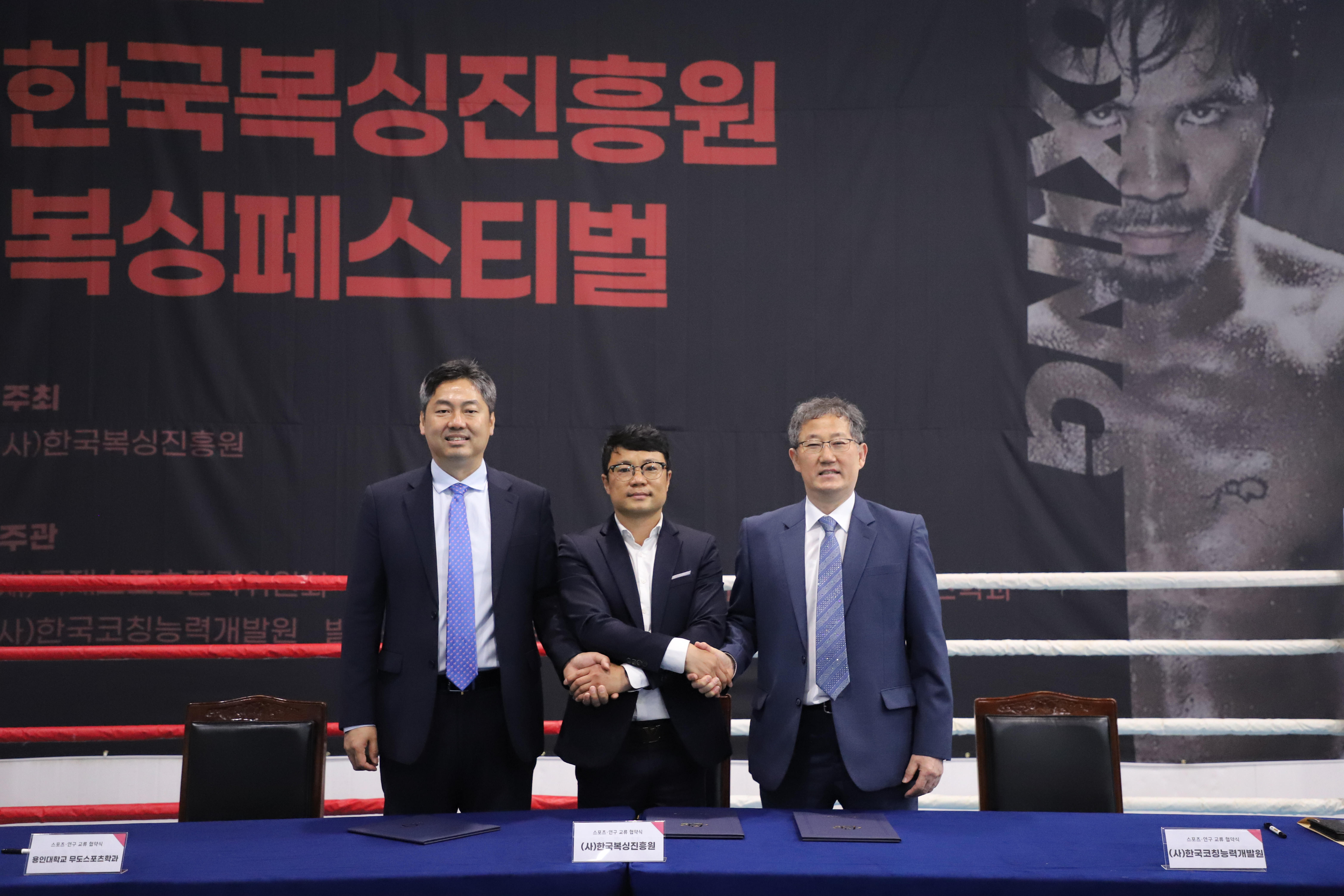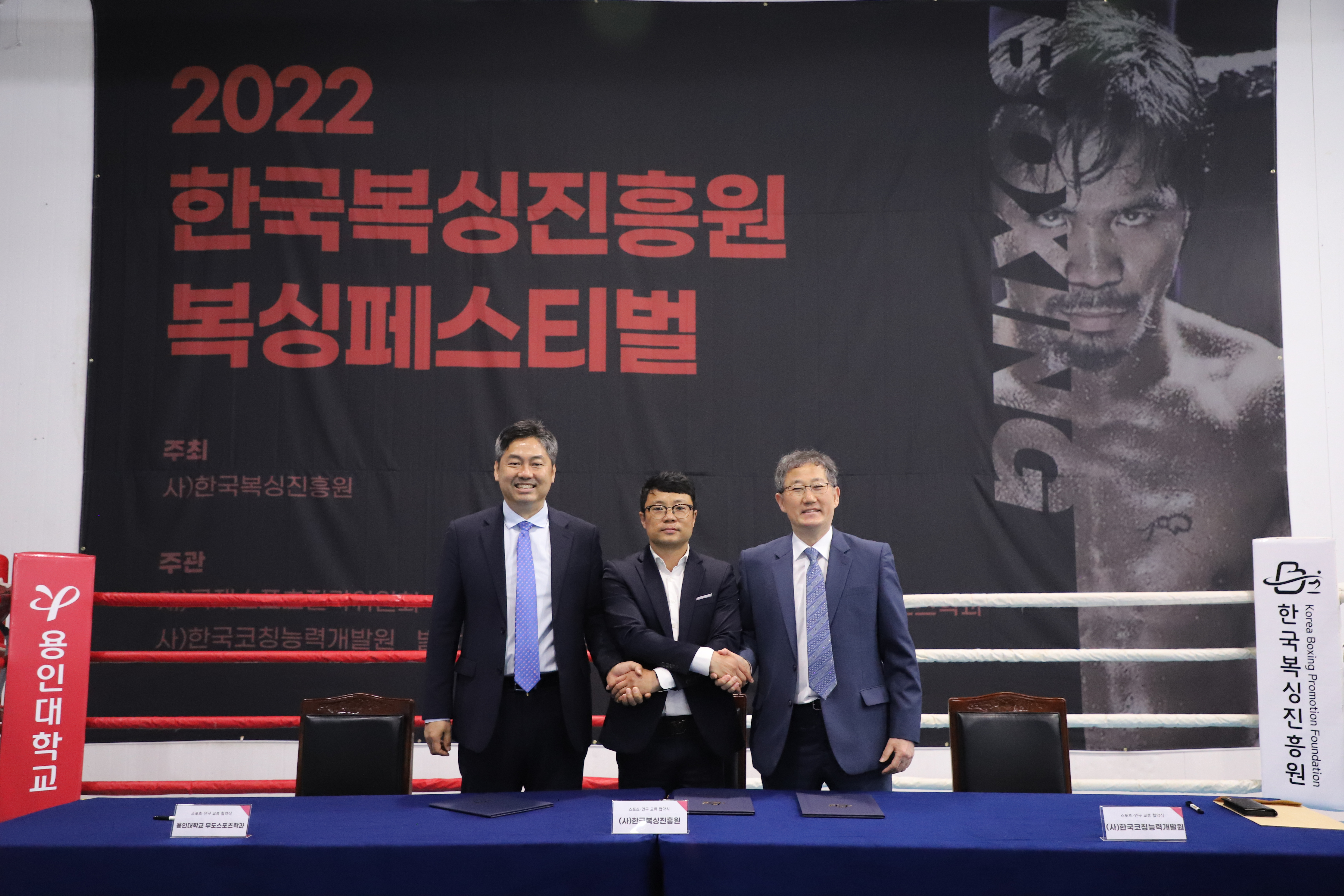 지난 토요일(57)에 용인대 종합체육관에서 복싱 발전을 위해 ()한국복싱진흥원(김주영 이사장, KCDC 복싱아카데미 회장), 용인대 무도스포츠학과(공성배 학과장, 경기코칭능력개발센터 회장), ()한국코칭능력개발원(박정근 원장) 3단체의 업무협약식을 가졌다. 특히 KCDC 복싱아카데미는 전국적으로 지회형태의 복싱아카데미를 확장할 예정이다.