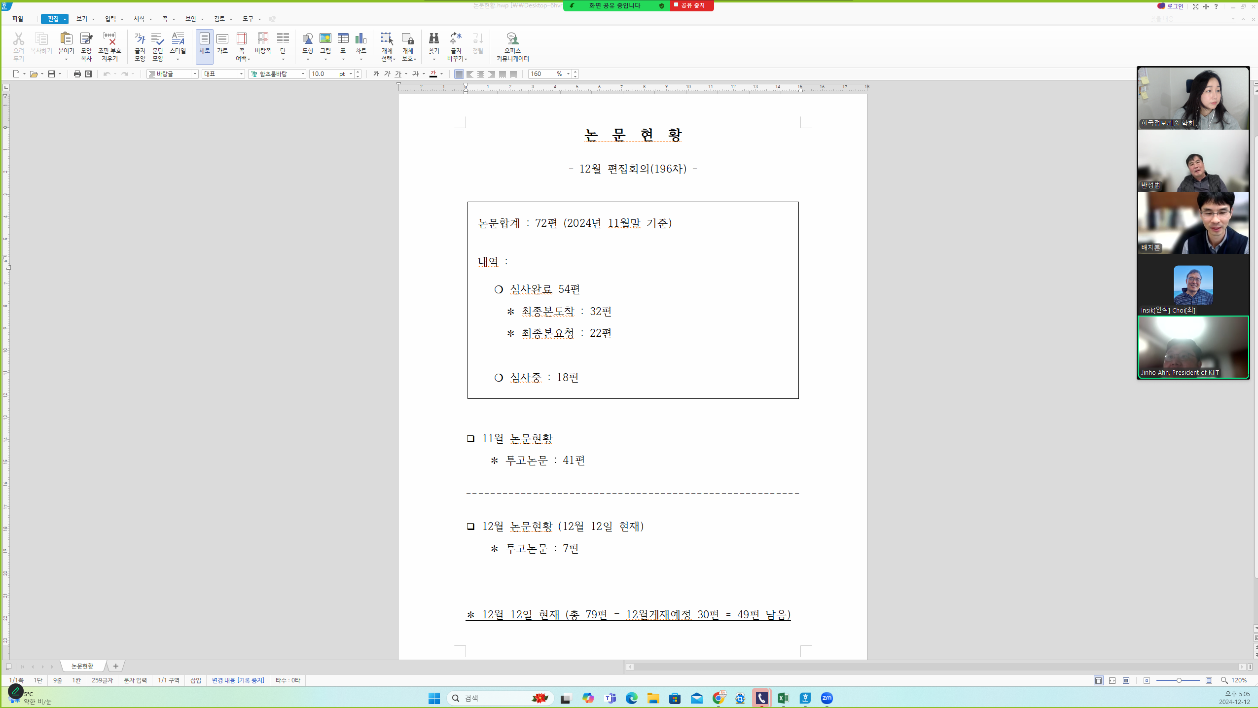 * 참 석 : 반성범, 안진호, 최인식, 배지훈 편집위원