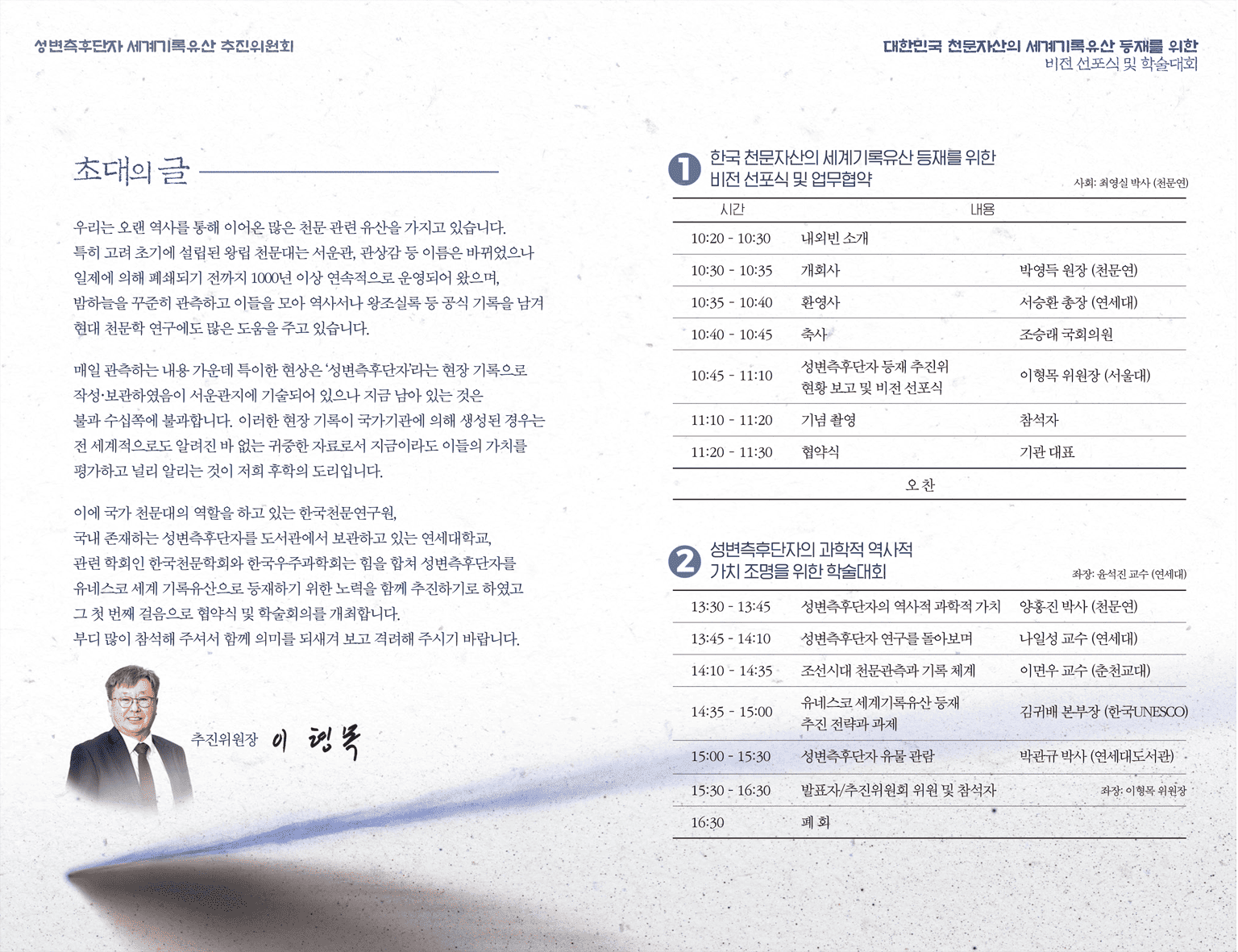주제 : 대한민국 천문자산의 세계기록유산 등재를 위한 비전 선포식 및 학술대회