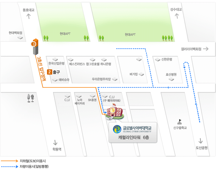 장소: 글로벌사이버대학교 서울학습관 (지하철 3호선 압구정역 2번 출구, 첨부한 약도 이미지 참조)