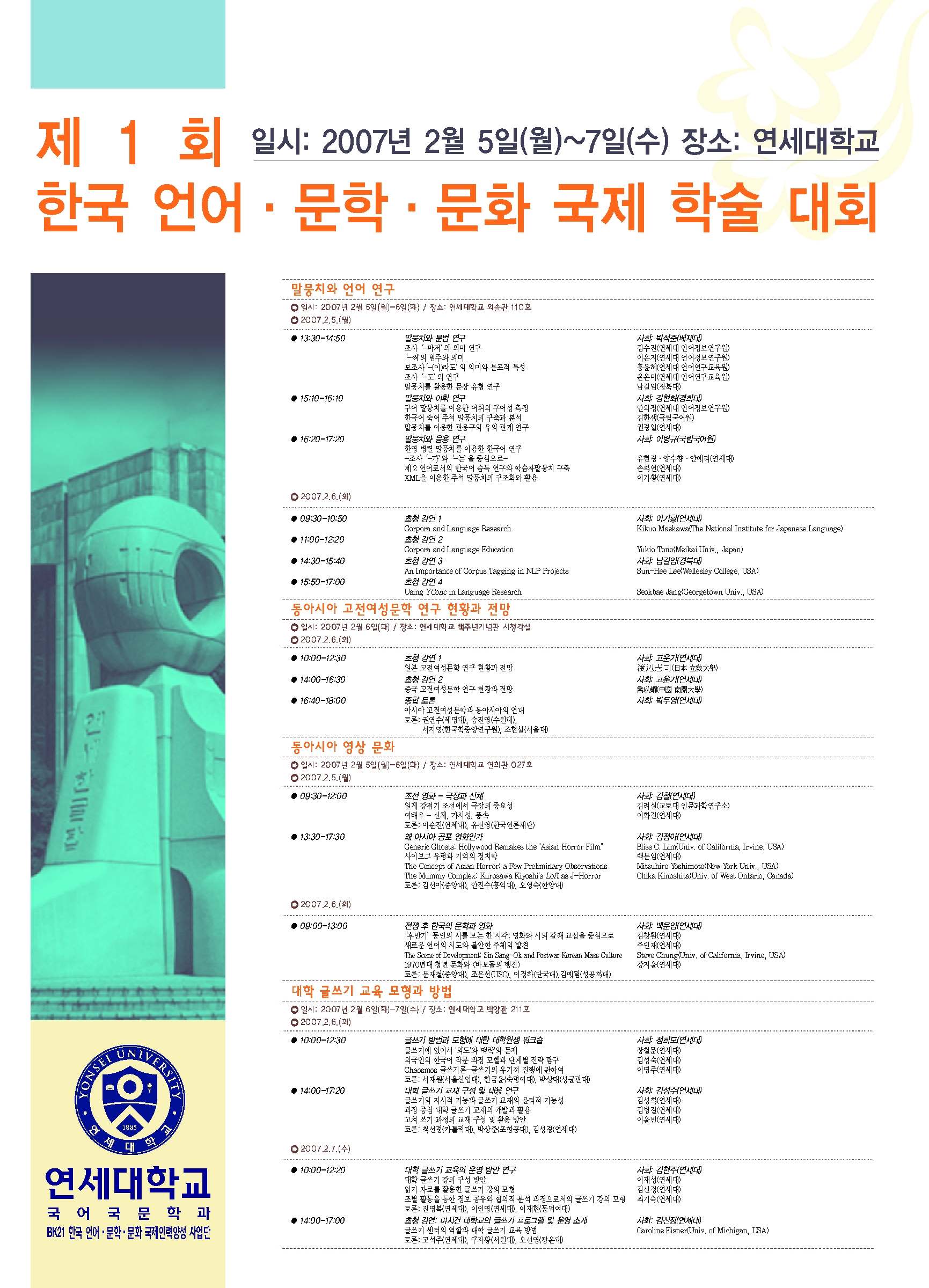 '동아시아 영상 문화' - 2007.2.5.-6. 연세대학교 연희관 027호