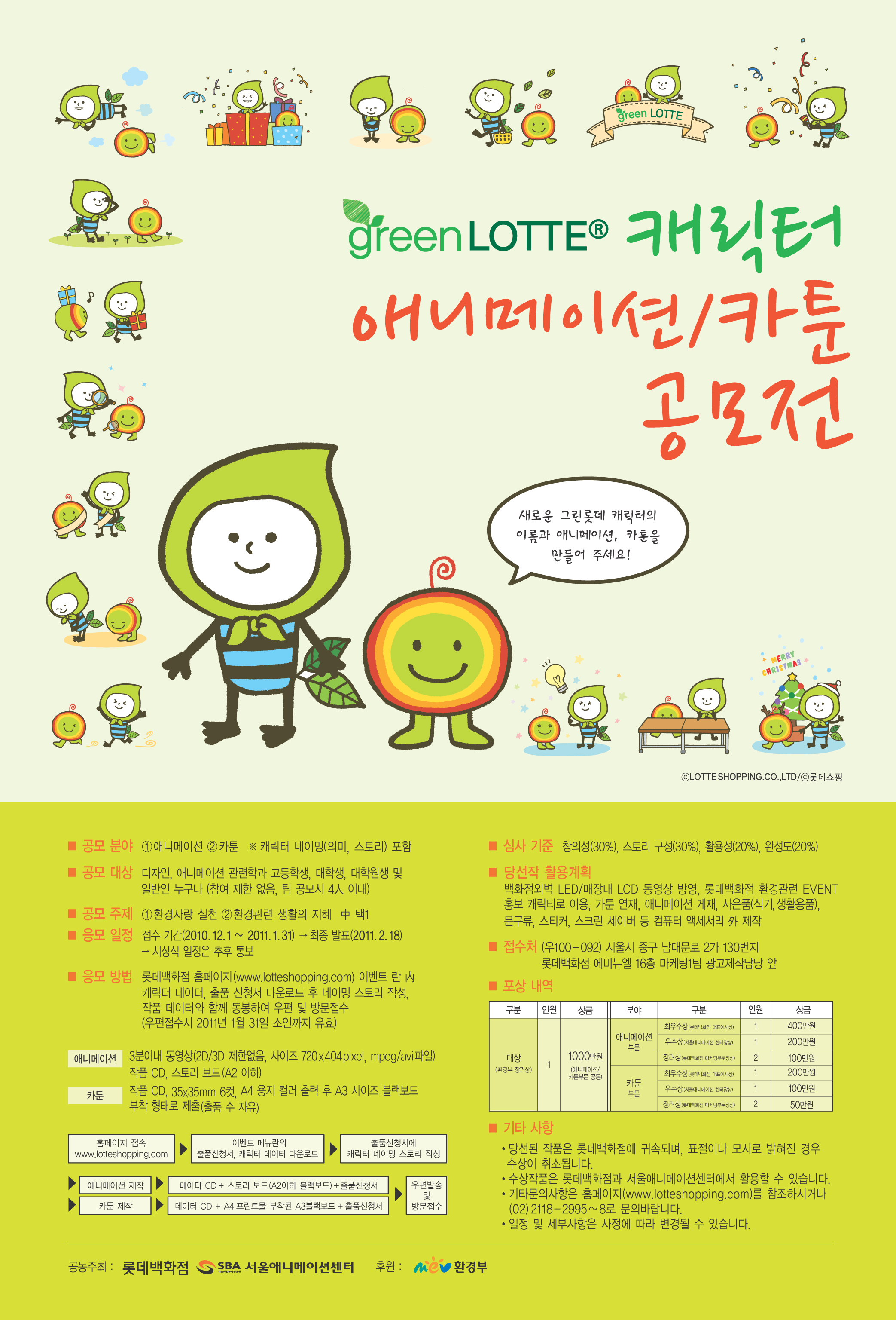 롯데백화점과 서울애니메이션센터가 공동으로 진행하는 공모전 안내입니다.
