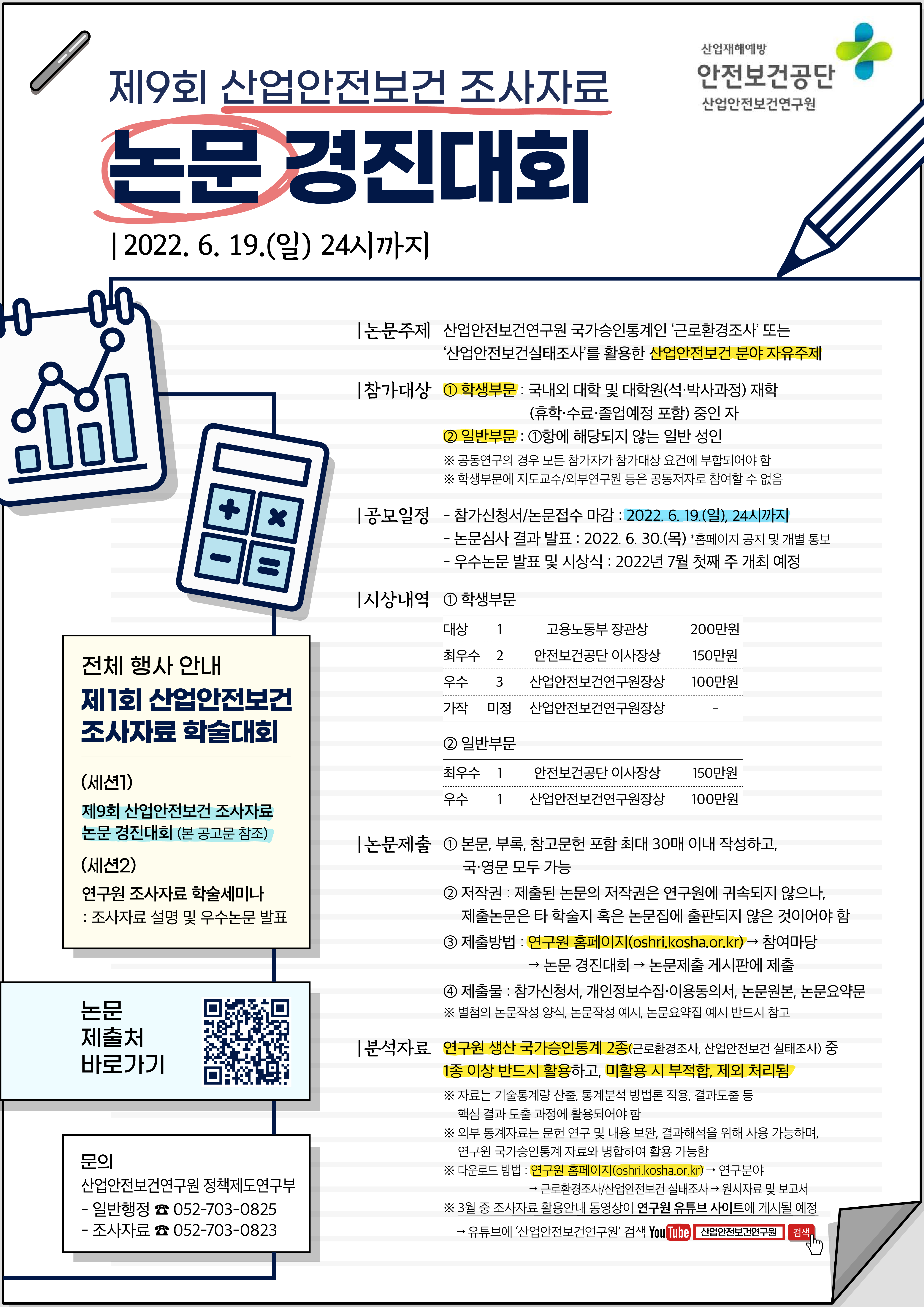 학회 학술대회에 꾸준히 지원해주고 있는 산업안전보건연구원에서 2022년 논문경진대회를 개최한다고 합니다.