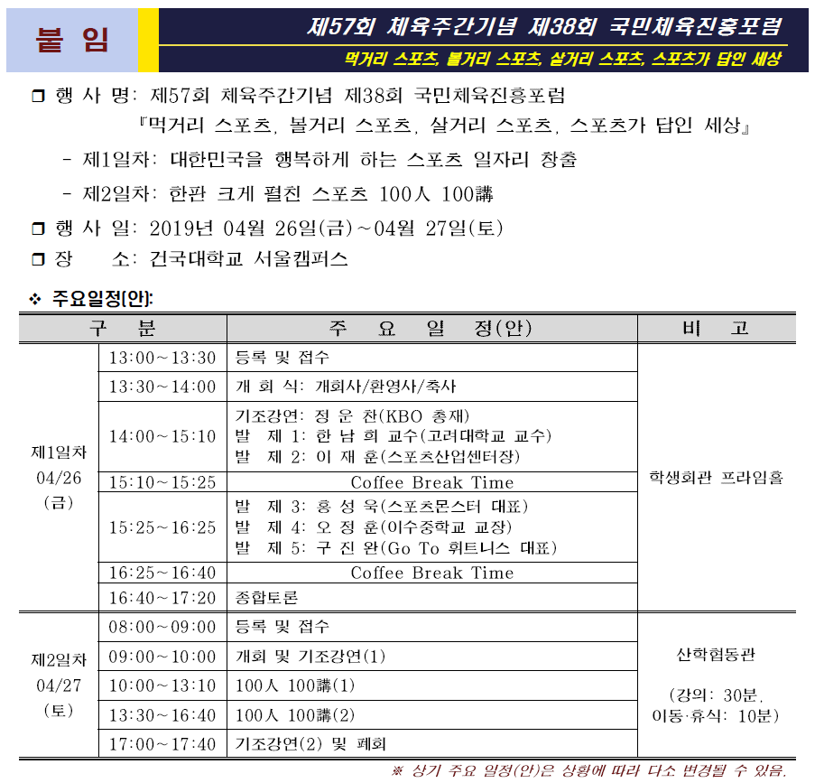 [학술행사] 대한민국 체육 100년 제57회 체육주간기념 제38회 국민체육진흥포럼