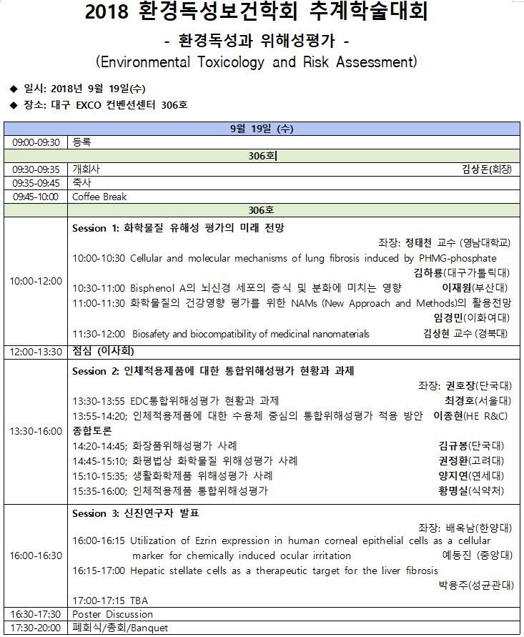 2018년도 환경독성보건학회 추계학술대회(2018년 9.19)프로그램 3차안내