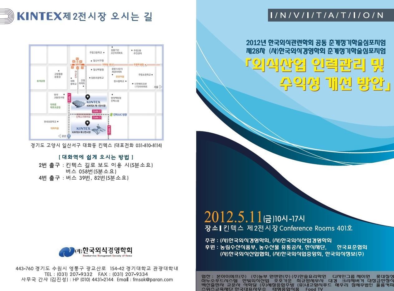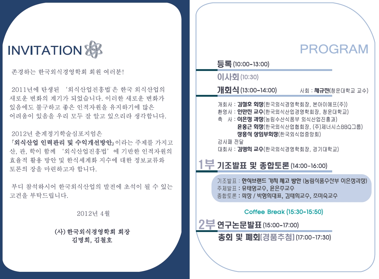 이에 2012년 춘계정기학술심포지엄은 “외식산업 인력관리와 수익성 개선 방안”이라는 주제를 가지고 산,