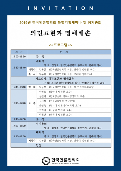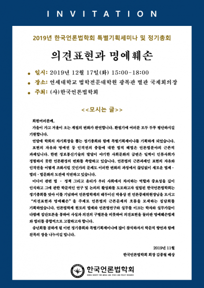 2019 한국언론법학회 추계학술대회 안내(국회입법조사처 공동)