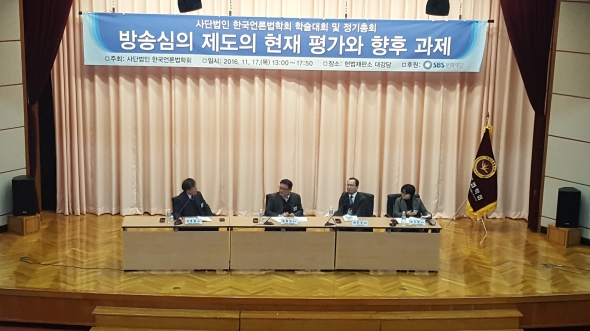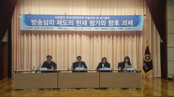 제1주제는 송종현 교수(선문대), 윤성옥 교수(경기대)가 "방송통신심의위원회 운영과 심의 활동 "을 주제로 발표를 하였고, 조소영 교수(부산대), 허진성 교수(대전대)가 토론을 맡아 주었습니다.