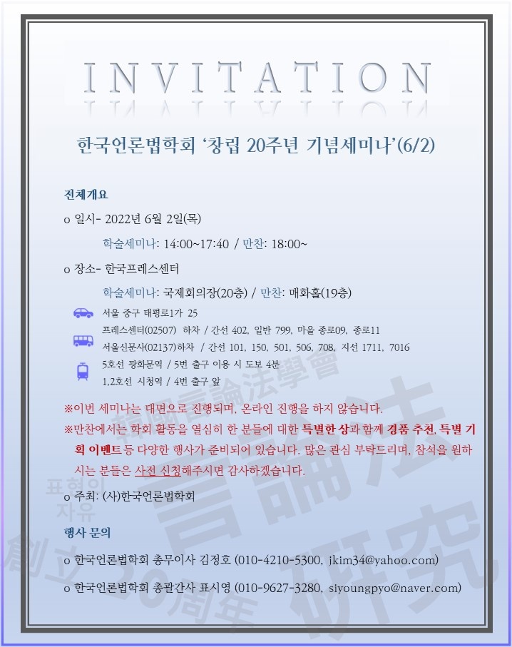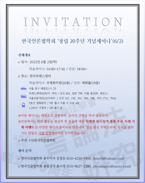 [공지] 한국언론법학회 창립 20주년 기념세미나 개최