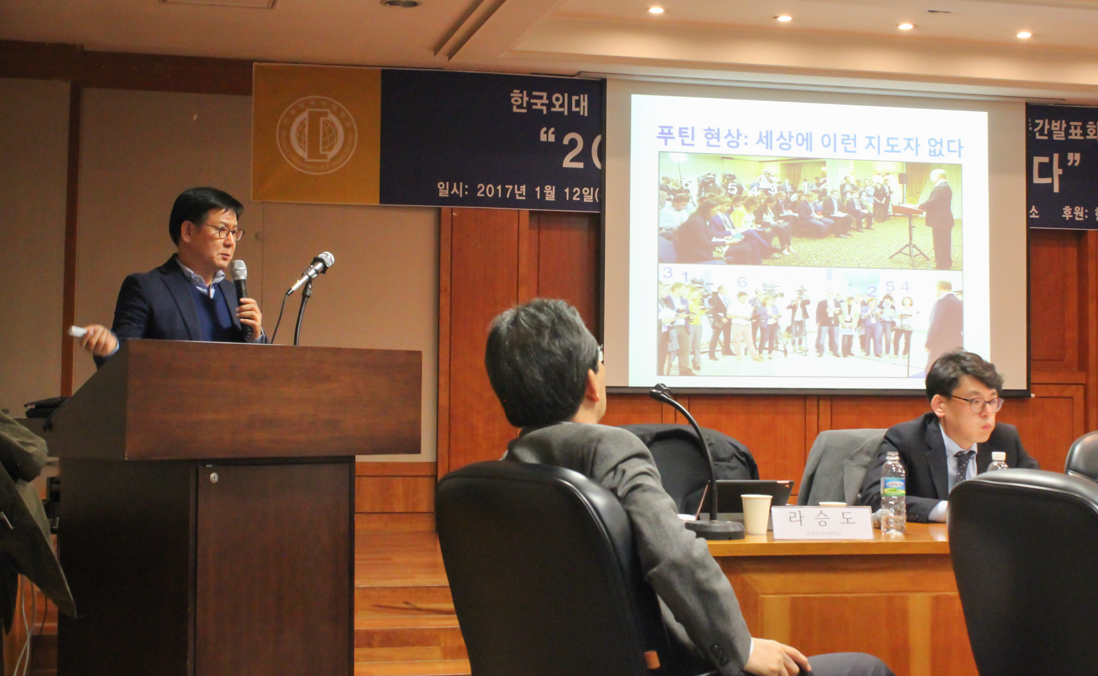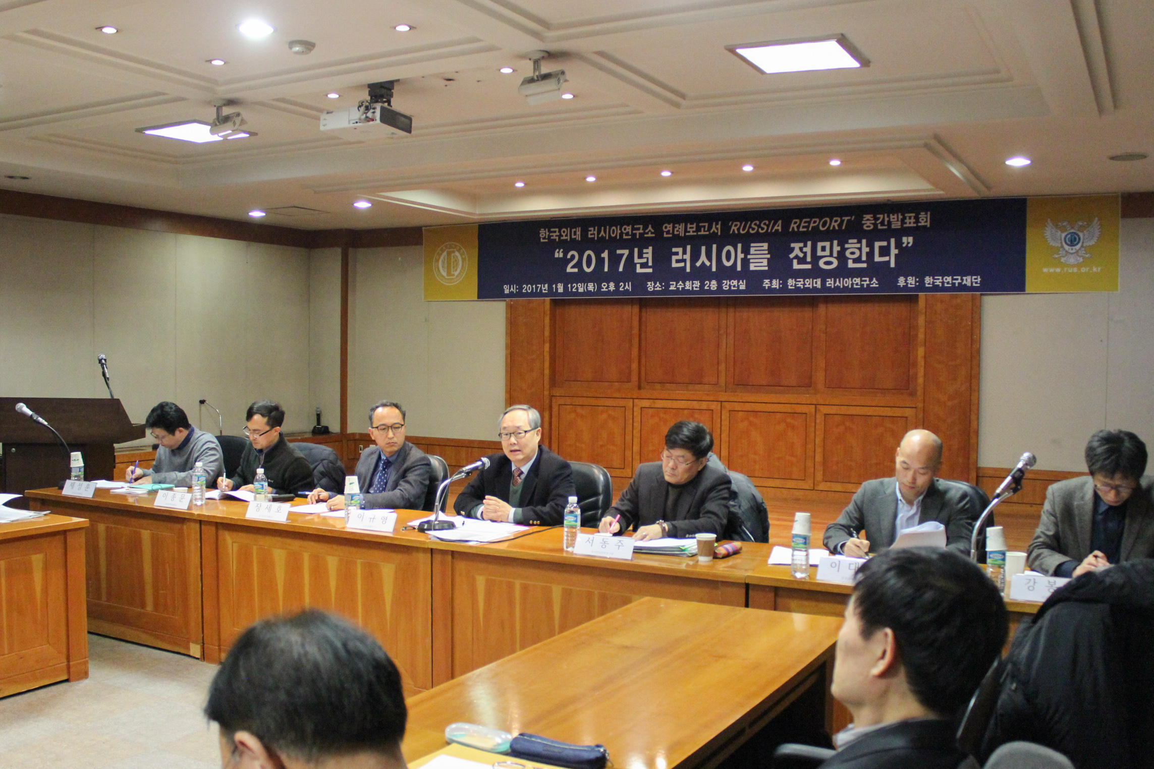 2017년 1월 12일(목) 우리연구소는 한국외대 서울캠퍼스 교수회관 2층 강연실에서 연례보고서 RUSSIA REPORT 발행의 일환으로 “2017 러시아를 전망한다” 제하의 국내학술대회를 개최했다. 우리연구소의 2017년 첫 학술행사로서 본 회의에는 러시아 전문가와 학문후속세대 등 총 80여 명이 참석하여 성황을 이뤘다.