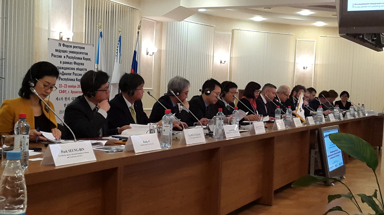 송준서  HK 교수는 이보화 한국외대 글로벌캠퍼스 부총장과 함께  11 월  21-24 일 동안 러시아 아르한겔스크 북극연방대학교 (Northern Arctic Federal University) 에서 개최된 제 4 차 한국 - 러시아 대학총장포럼에 참석하였다 . ‘ · 러 대학 산학협력 강화 방안 이라는 주제로 개최된 본 포럼에서는 북극연방대 상트페테르부르크국립대 모스크바 고등경제학교 우랄연방대 등 총  11 개 대학 총장단과 아르한겔스크 교육과학부 장관 경제개발부 장관이 참석하였고 한국 측에서는 강원대 국민대 한국과기대 한국외대 등  6 개 대학 총장단과 한 · 러 대화 경제통상분과 교육과학분과 위원 등이 참석하여 양국 대학 간 학술협력 및 학생 교류 활성화 방안에 대해 논의했다 특히 한국외대는 북극연방대와 학술교류협력에 대한 양해각서를 체결하였는바 현재 북극 지역 연구프로젝트를 수행하고 있는 러시아연구소와 향후 활발한 학술교류가 기대 된다 .