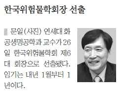 12월 26일에 개최된 본 학회의 제5차 이사회와 임시총회에서 제6대 한국위험물학회 회장으로 연세대학교의 문일 교수님이 선출되었습니다.