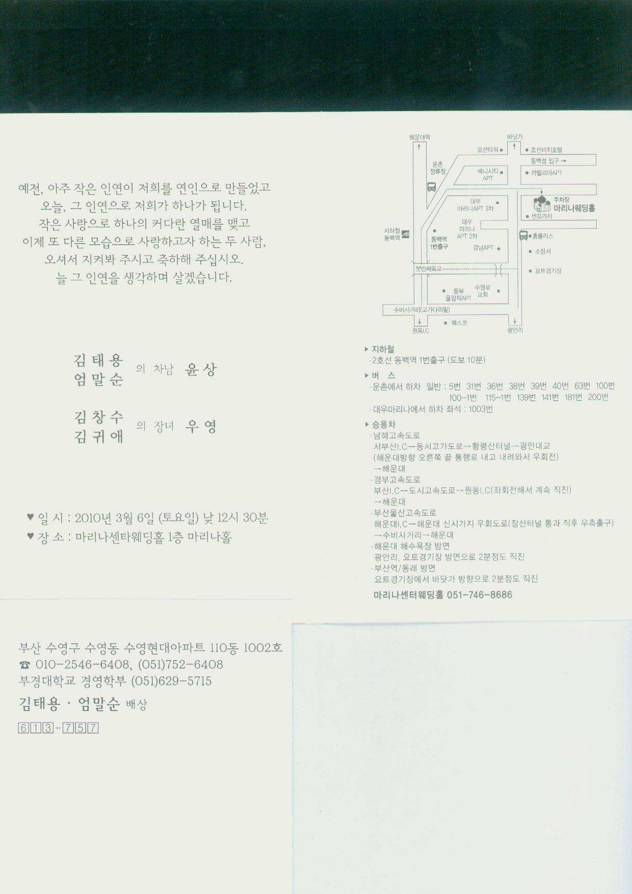 2. 장 소 : 부산 해운대 소재 마리나센타웨딩홀1층 마리나홀 (051-746-8686)