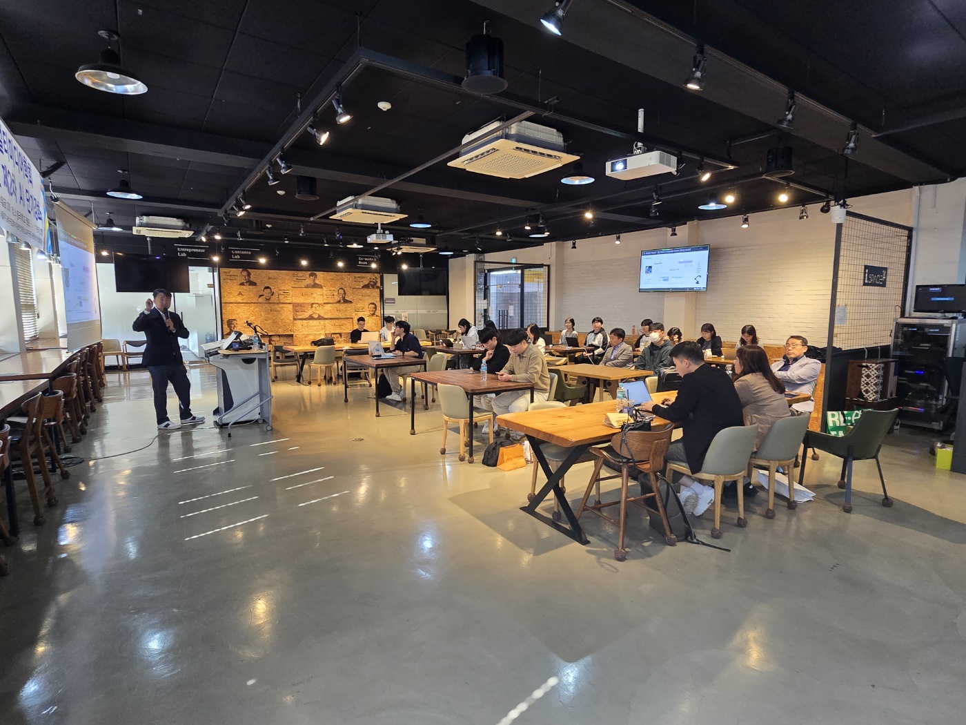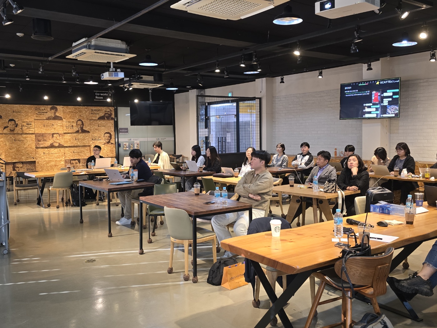 스캐터랩 이재훈 실장의 [멀티모달 기술을 활용한 챗봇 서비스의 최신 동향과 실사례 연구방법]이라는 주제로 진행되었으며, 특히나 온라인과 오프라인 동시 70명 이상이 참여하여 1차 단기강좌에 비해 많은 분들이 더 관심을 가지고 참석해 주셨습니다.