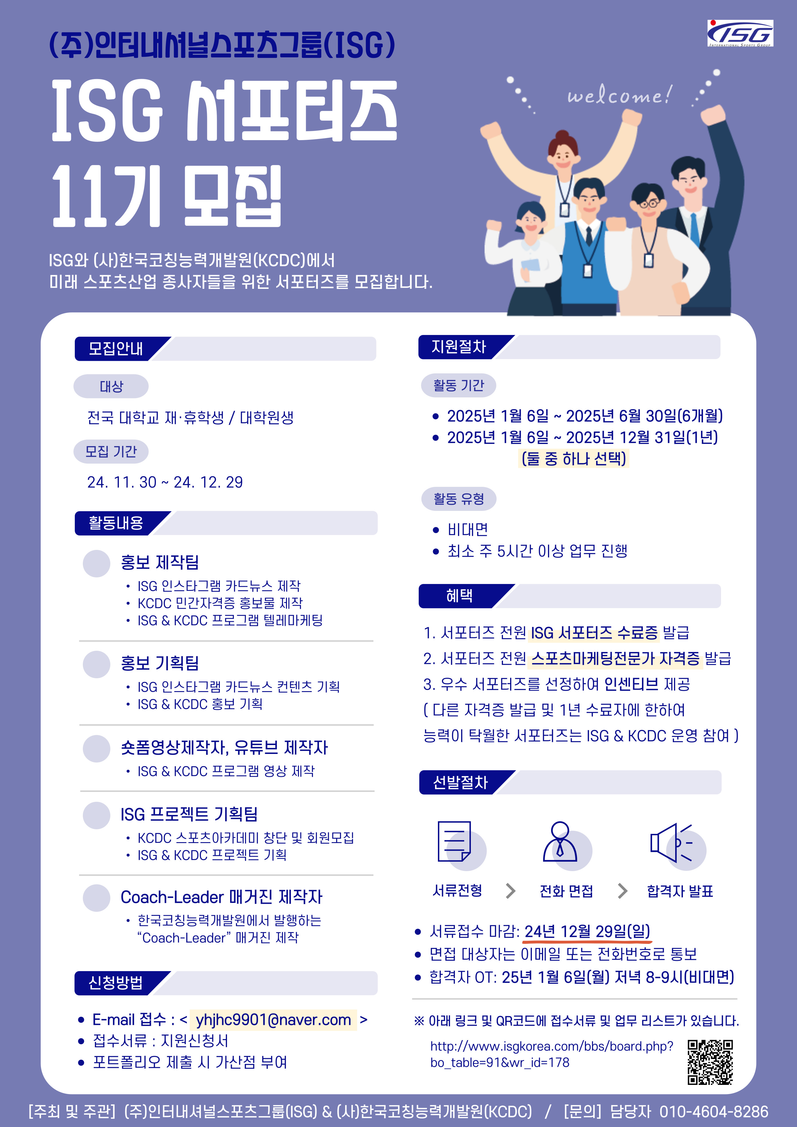 인터내셔널스포츠그룹(이하 ISG)과 ()한국코칭능력개발원(이하 KCDC)에서