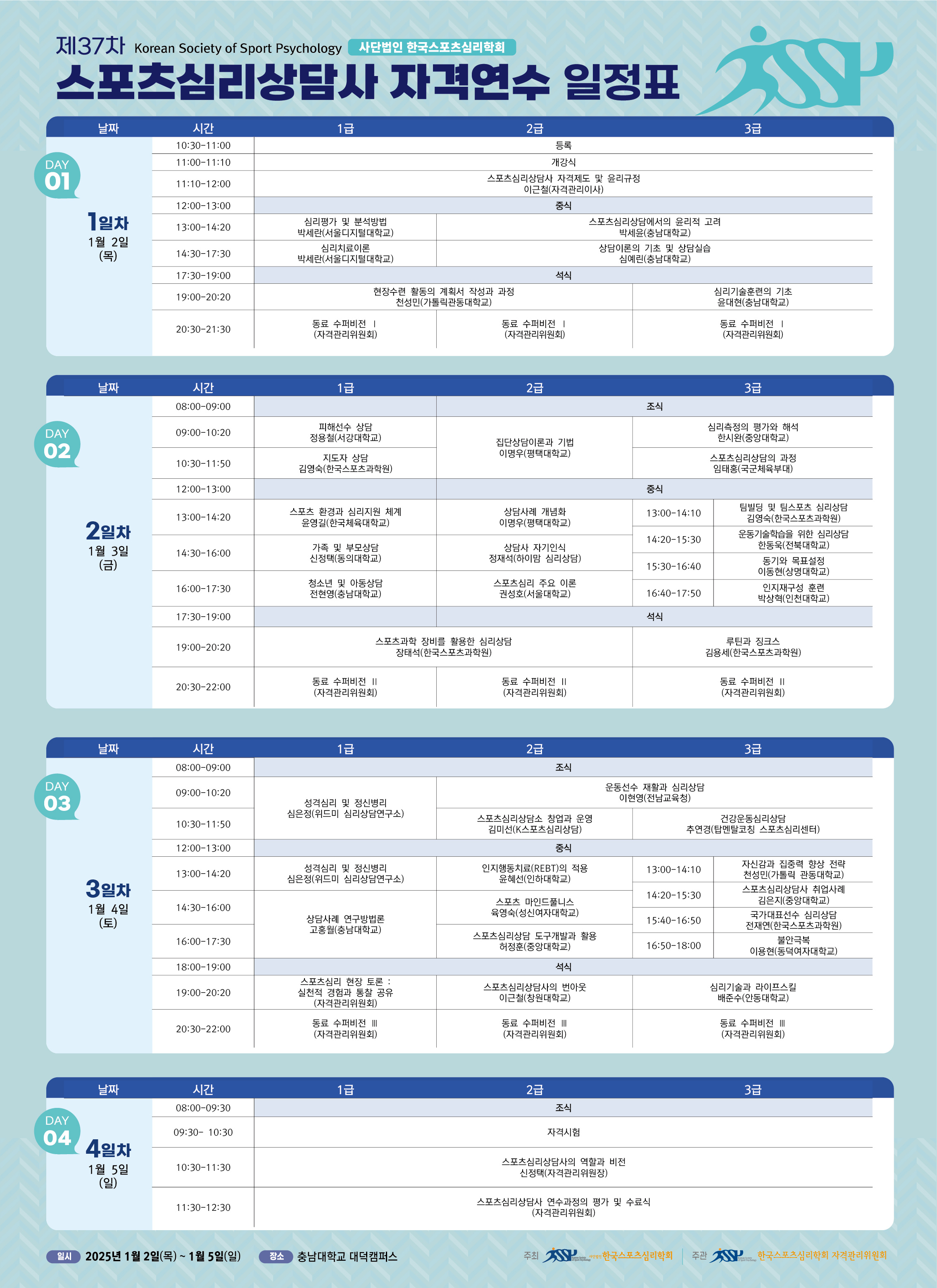 2025년 제37차 스포츠심리상담사 자격연수 대상자를 안내해드립니다.