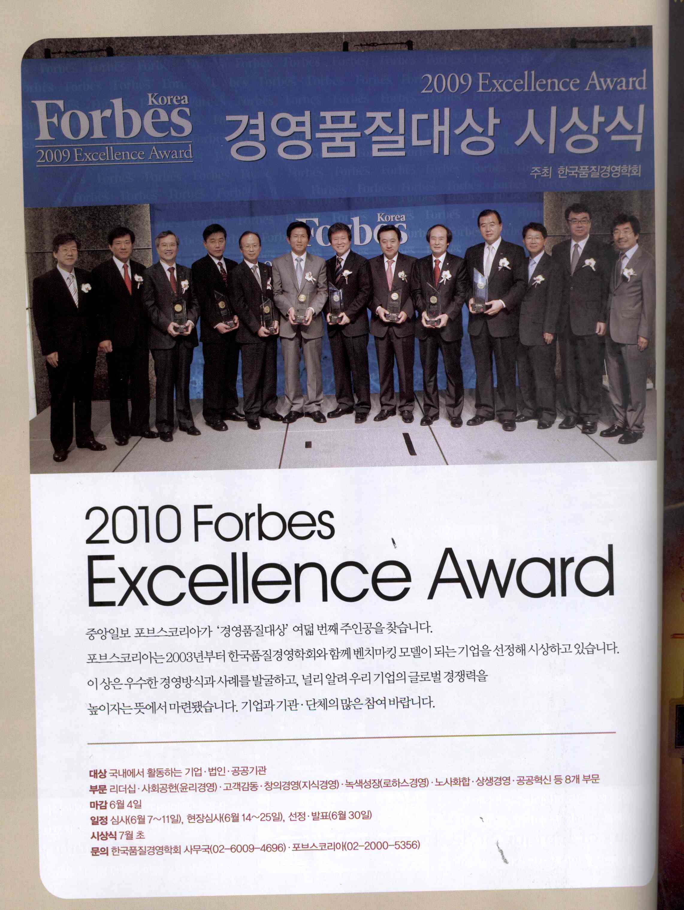 중앙일보 포브스코리아와 한국품질경영학회가 "경영품질대상" 주인공을 찾습니다. 이 상은 우수한 경영방식과 사례를 발굴하고, 널리 알려 우리기업의 글로벌 경쟁력을 높이자는 뜻에서 마련됐습니다. 기업과 기관, 단체의 많은 참여 바랍니다. 대상 - 국내에서 활동하는 기업, 법인, 공공기관 부문 - 리더십, 사회공헌(윤리경영), 고객감동, 창의경영(지식경영), 녹색성장(로하스경영), 노사화합, 상생경영, 공공혁신 등 8개 부문 마감 - 6월 4일 일정 - 심사(6월 7일~11일), 현장심사(6월 14일 ~ 25일), 선정발표(7월 12일) 시상식 - 7월 20일 문의 - 한국품질경영학회(6009-4696) 포브스코리아(2000-5356)