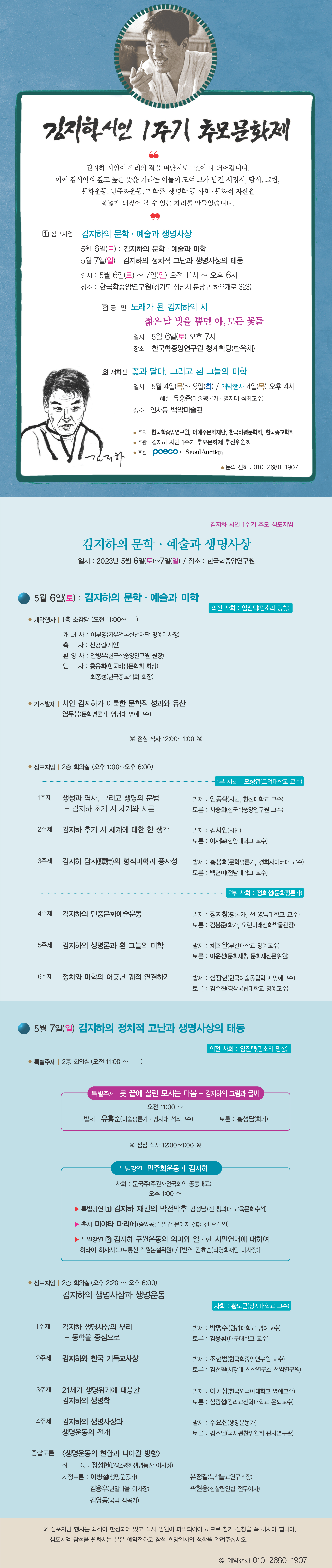 5월 6일(토): 김지하의 문학·예술과 미학(한국비평문학회)