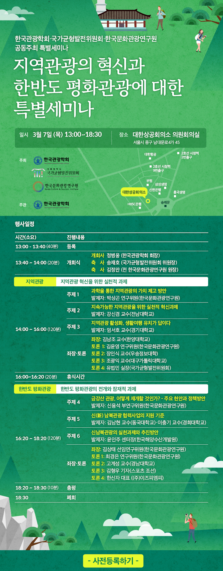 『지역관광의 혁신과 한반도 평화관광에 대한 특별세미나』 초청장을 보내드리오니,